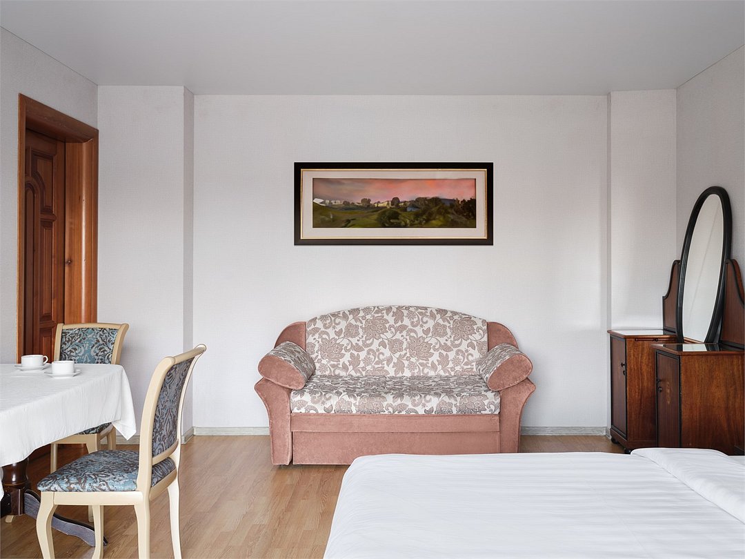 Обновленные просторные номера повышенной комфортности площадью 32 кв. м. При трехместном размещении диван разбирается и становится полноценным удобным спальным местом.Услуги и удобства
