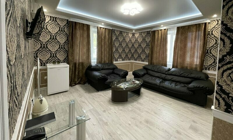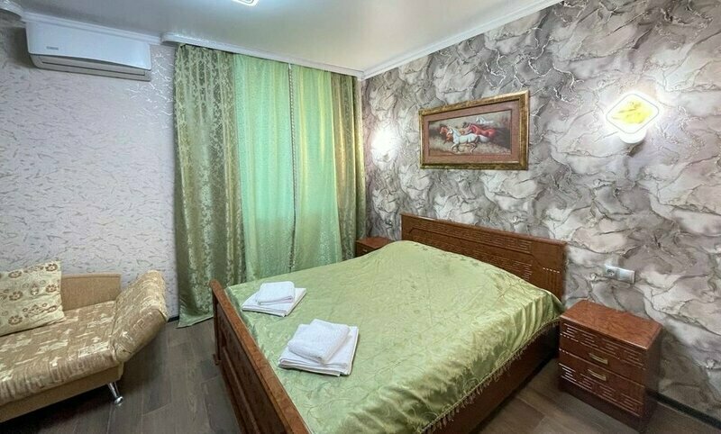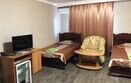 Двуспальная кровать, диван, кресло, ТВ, холодильник, ванная комната с душевой кабиной (доп.место кровать в гостиной)