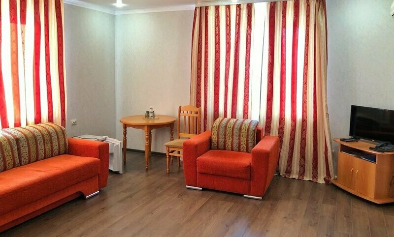 Гости располагаются в 14 комфортабельных номерах, которые оснащены всем необходимым. В каждом номере имеется телевизор, санузел с душем, туалетные принадлежности, а в номерах категории люкс – кондиционер и холодильник.