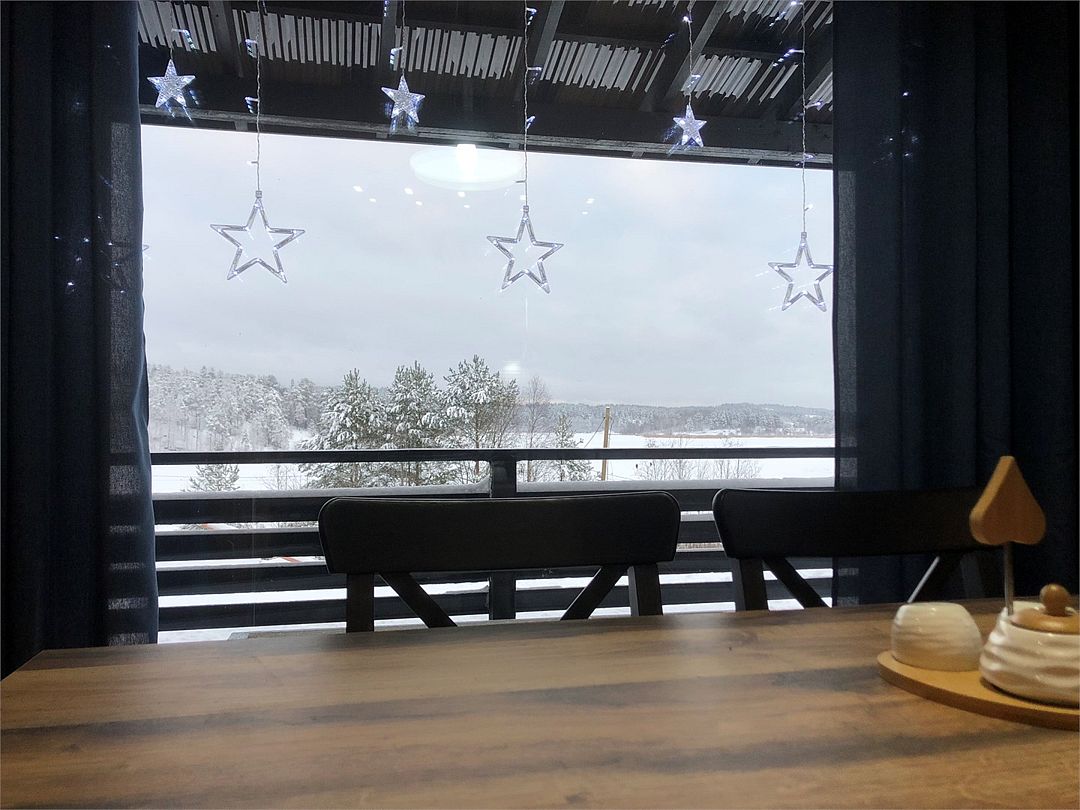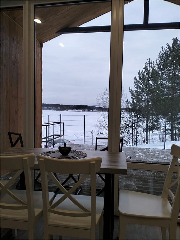«Черная жемчужина» 80м2 дом до 6 гостей. С панорамными окнами на залив. Находится в заливе Токкарлахти в Сортавала. Стабильный Wi-fi.