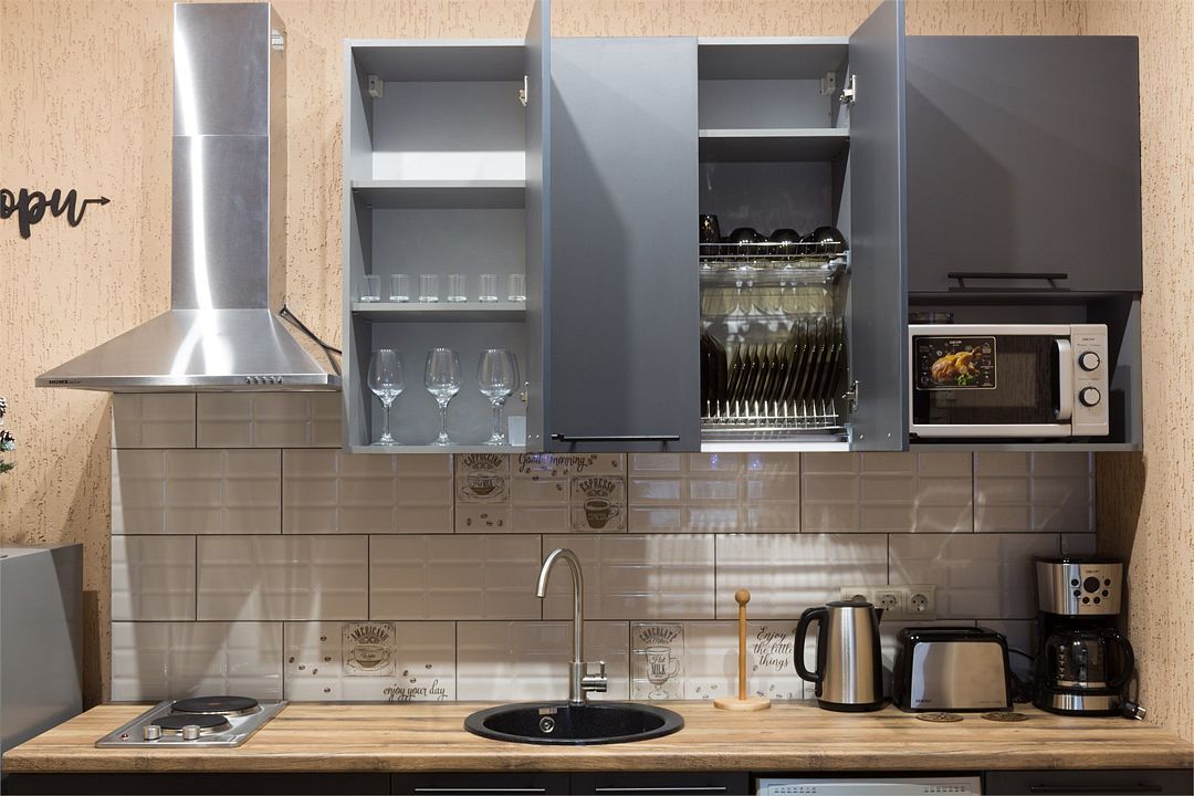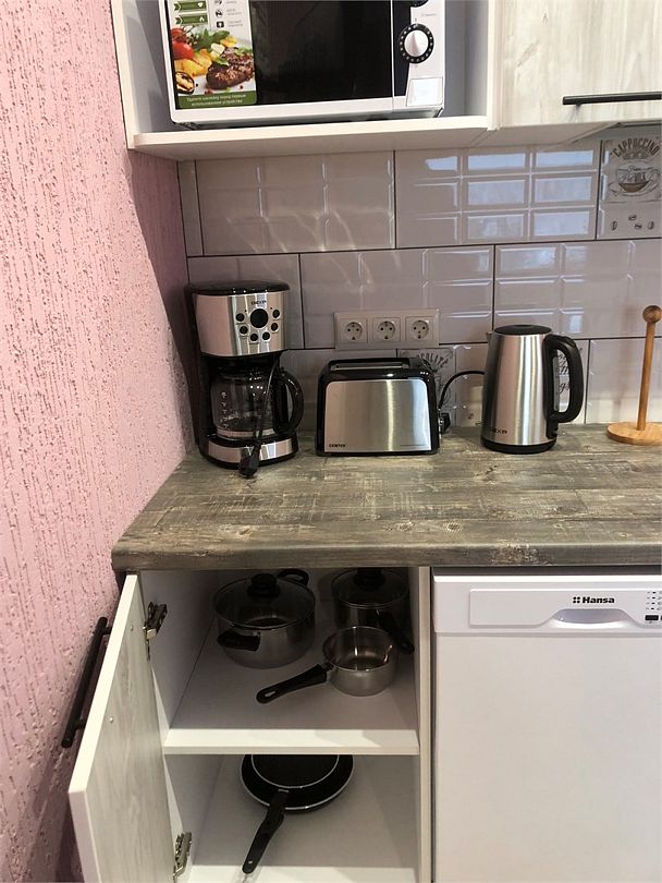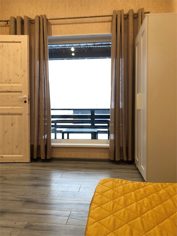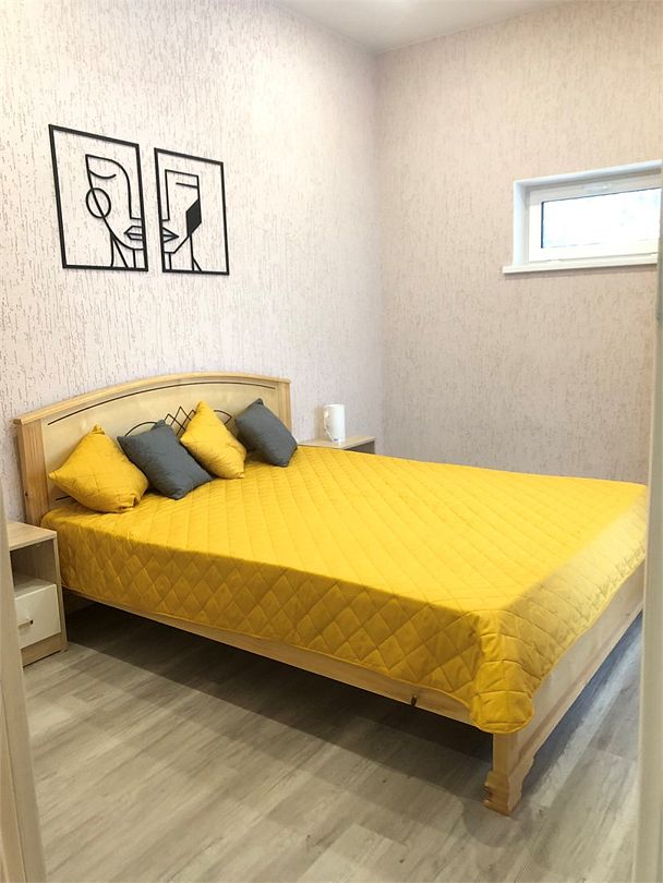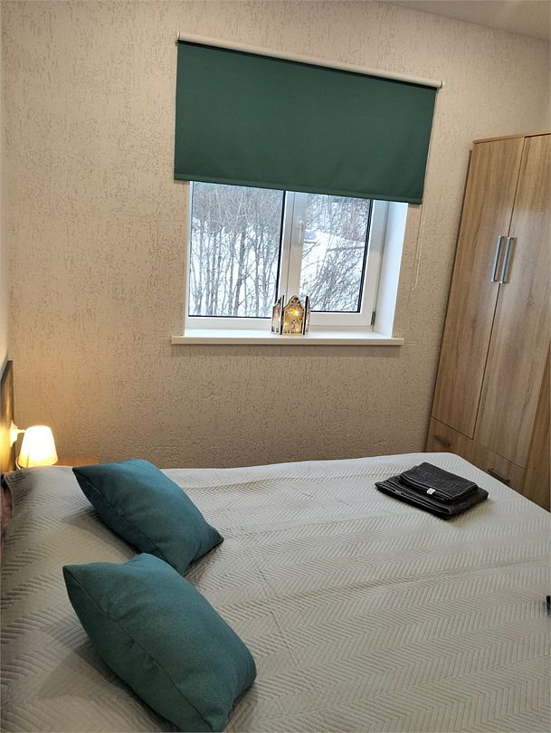 1 спальня и лофт, полностью оборудованная кухня- гостиная, туалет, душ, телевизор, холодильник, микроволновая печь, посудомоечная машина, стиральная машина, чайник, кофеварка, тостер, утюг. Есть вся посуда.
