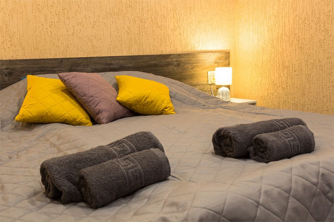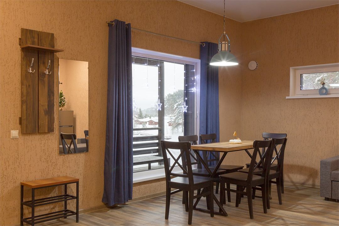 Две отдельных спальни и лофт, полностью оборудованная кухня, гостиная, туалет, душ, телевизор, холодильник, микроволновая печь, посудомоечная машина, стиральная машина, чайник, кофеварка, тостер, утюг. Есть вся посуда.