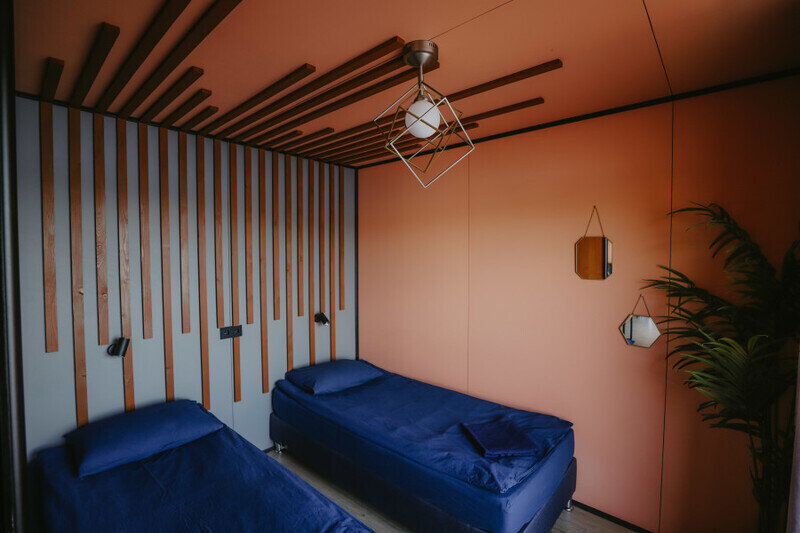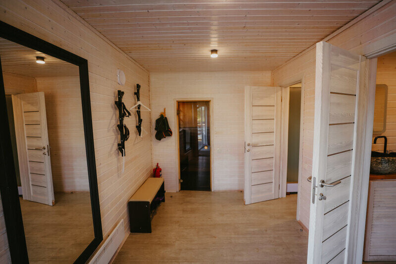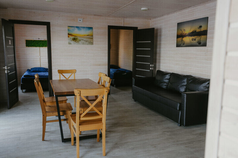 Коттеджи оборудованы удобными спальными местами, интернетом, телевизором и отдельными ванными комнатами для обеспечения комфортного проживания. Также предоставляются средства гигиены, полотенца и фены.