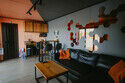В зале есть барная стойка, а гости могут также насладиться свежим воздухом на открытой террасе с видом на озеро.