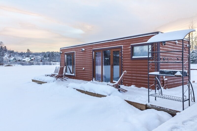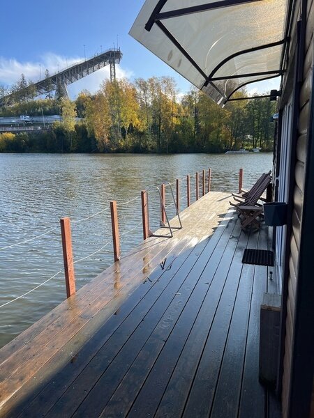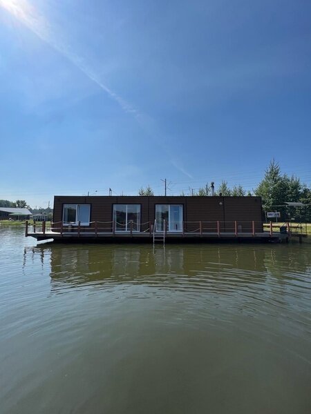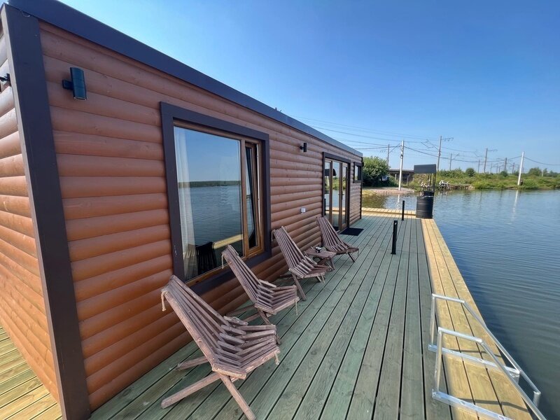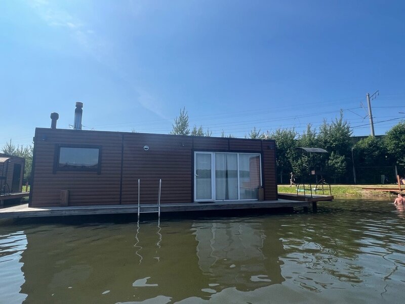 Уютный домик на воде, вмещающий в себя до 4 человек, одна спальня, гостиная, душевая.