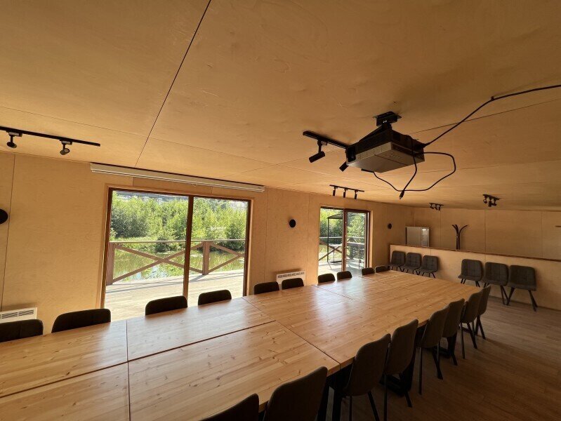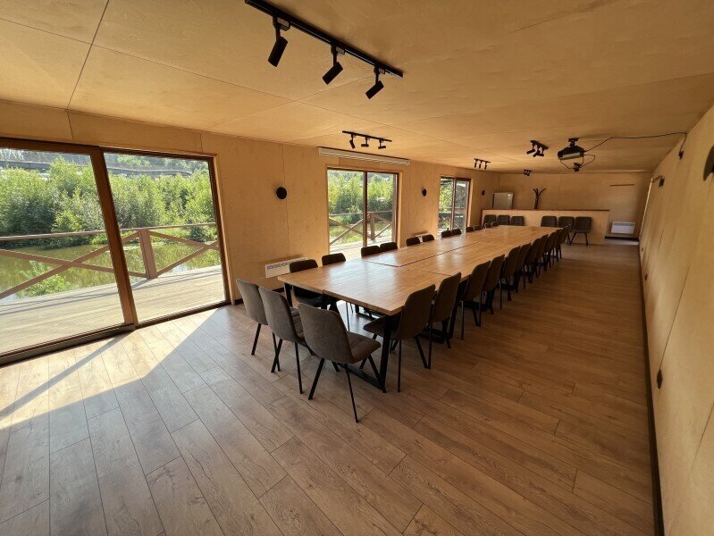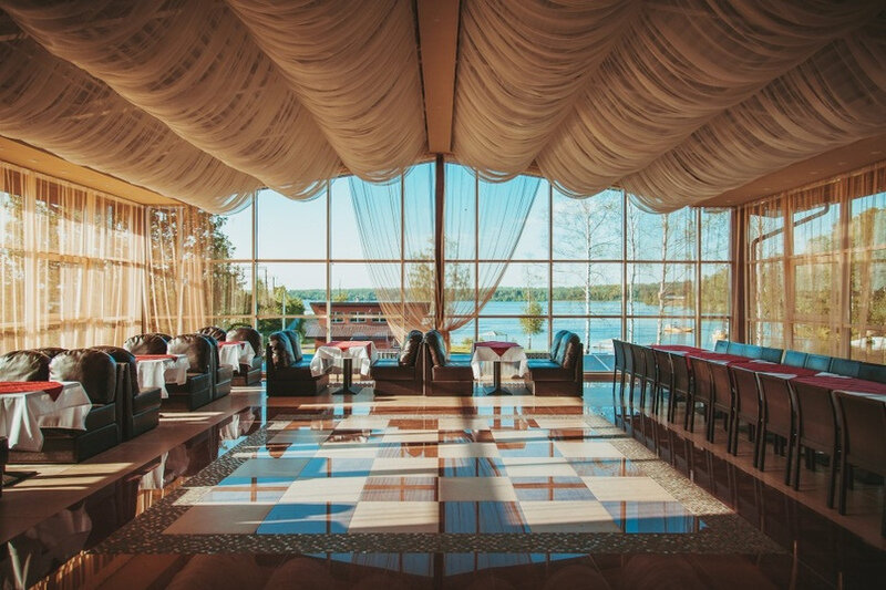Банкетный зал расположен на берегу живописного Курголовского озера. Зал вмещает 60 человек. Здесь можно провести корпоратив, юбилей или научную конференцию.