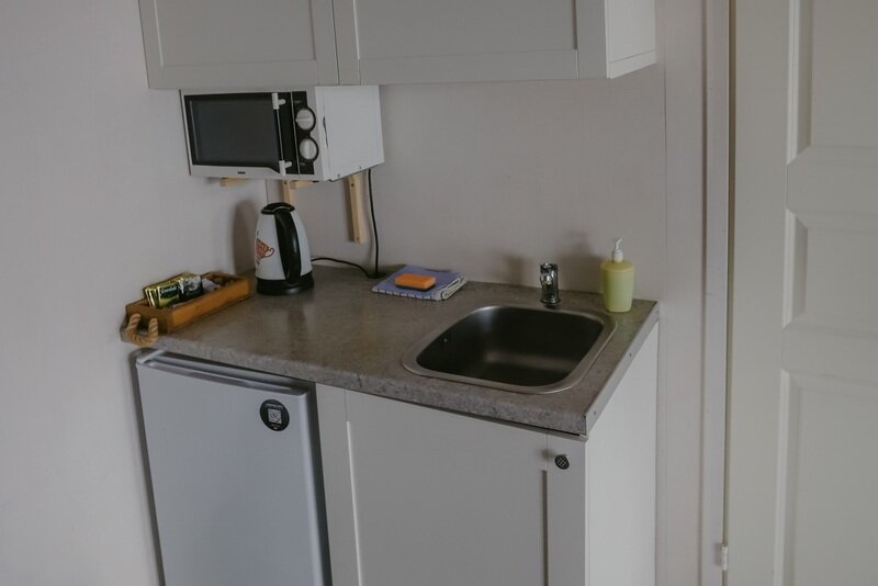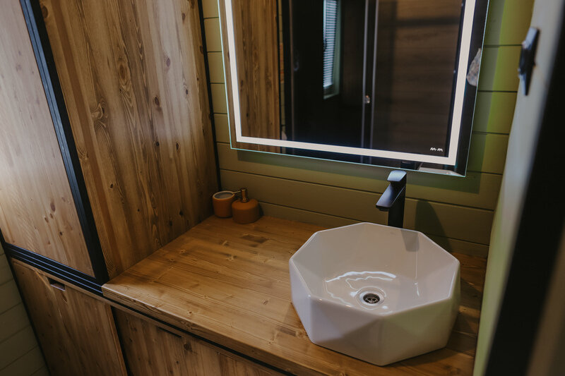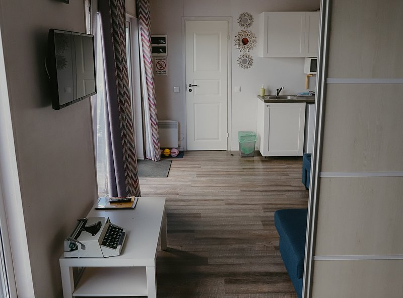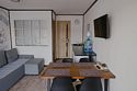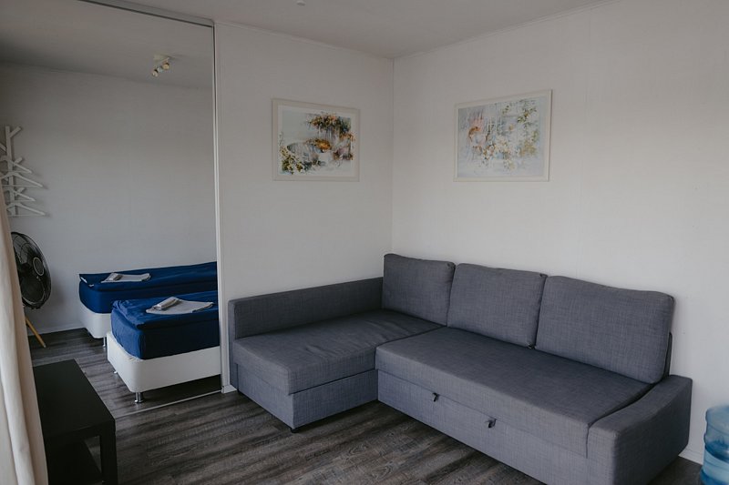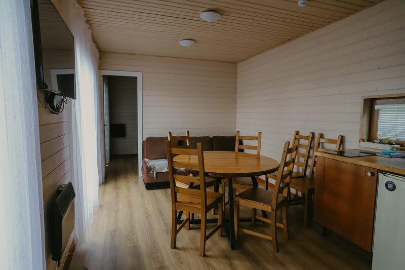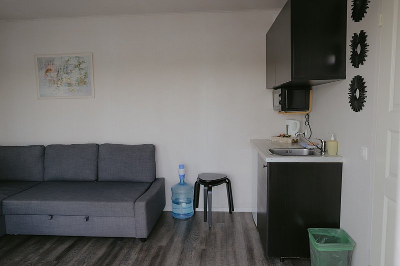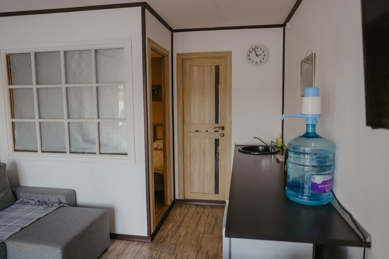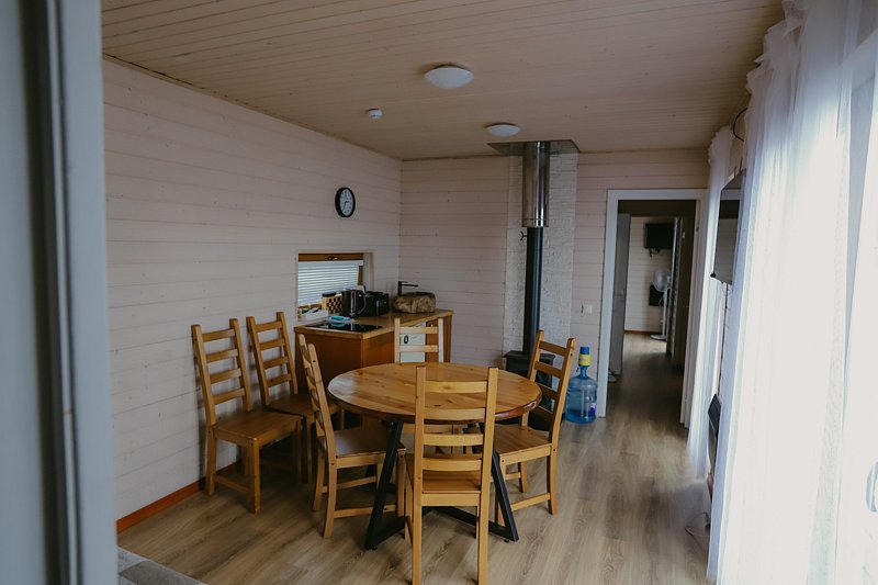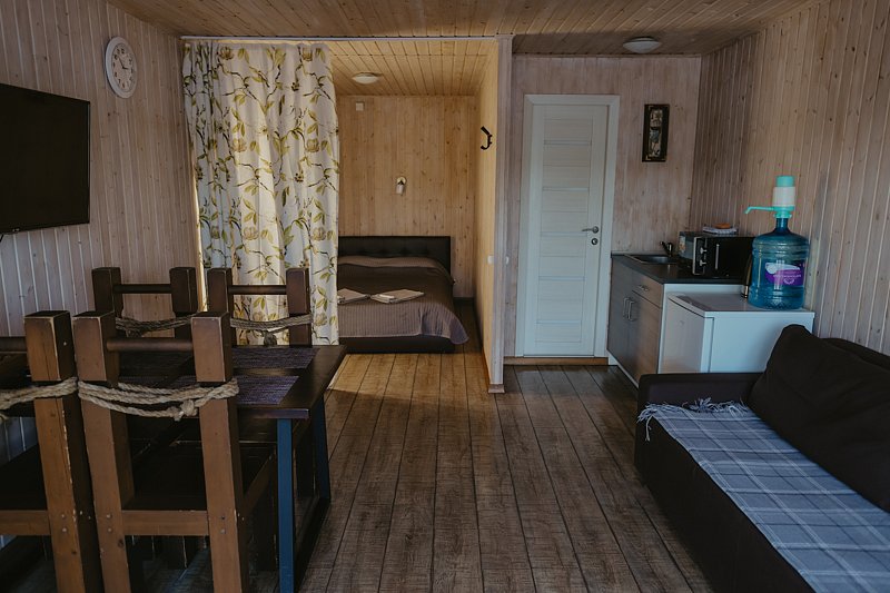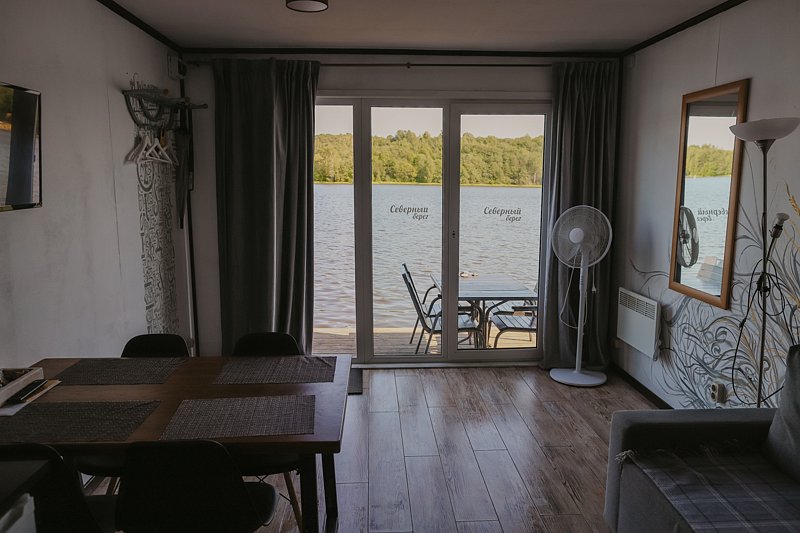 Комфортный и тёплый домик на воде с панорамным видом из кухни-гостиной и отдельной спальни. Вмещает в себя 4 человека (кровать king-size в спальне и угловой диван-кровать в гостиной).