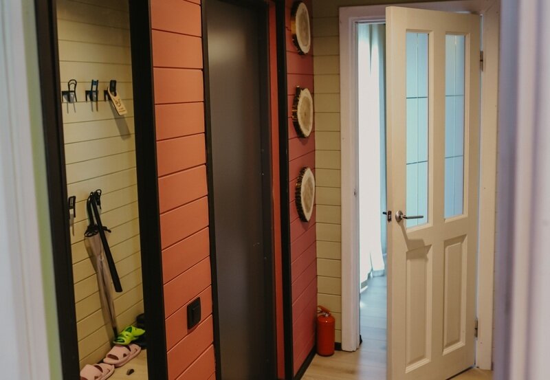 В доме двуспальная кровать отделенная шторами и диван-кровать в кухне-гостиной. В коттедже имеется: мини-кухня, чайник, микроволновка, холодильник, посуда и приборы для четверых, цифровое и смарт ТВ, интернет (Wi-Fi). Ванная комната с душевой кабинкой. На улице мангал. Рядом с домиком плавучая банька "Анчоус" (оплачивается отдельно) и прорубь.