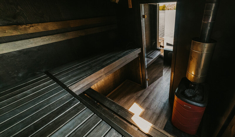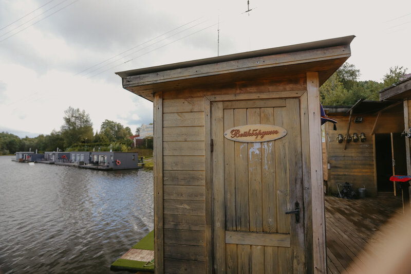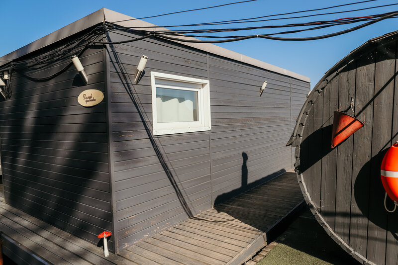 Плавучая банька расположена между плавучим домиком Лещ и Тунец. В баньке комфортно смогут находиться до 4 человек.