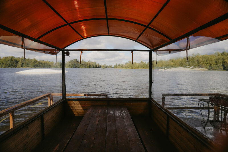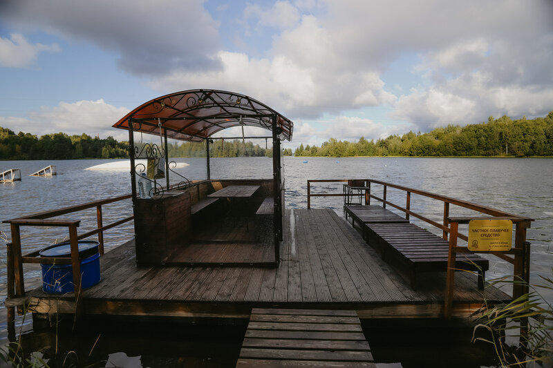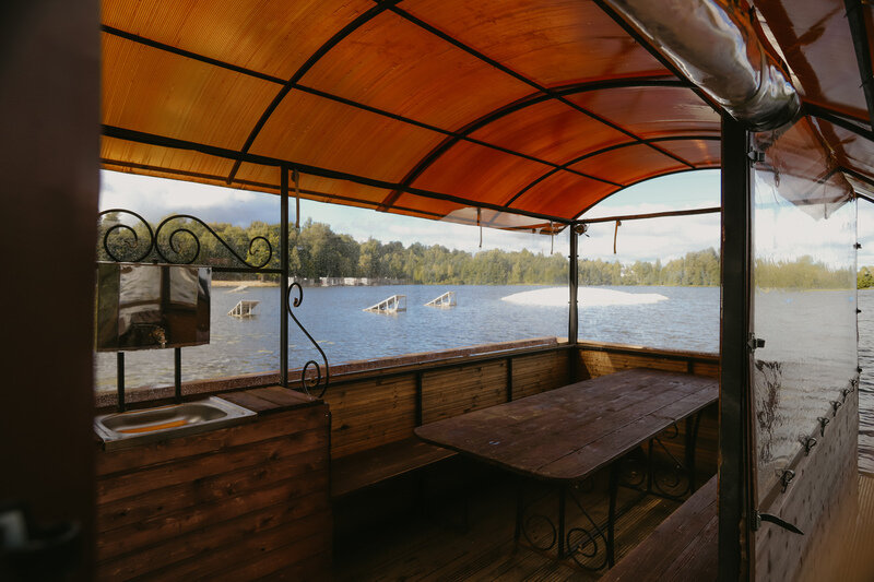 Плавучая банька расположена между плавучим домом Форель и Судак. В баньке комфортно смогут находиться до 6 человек. Панорамный вид.