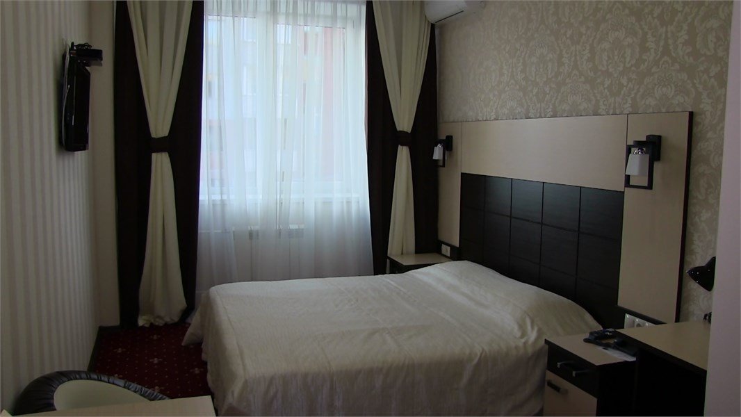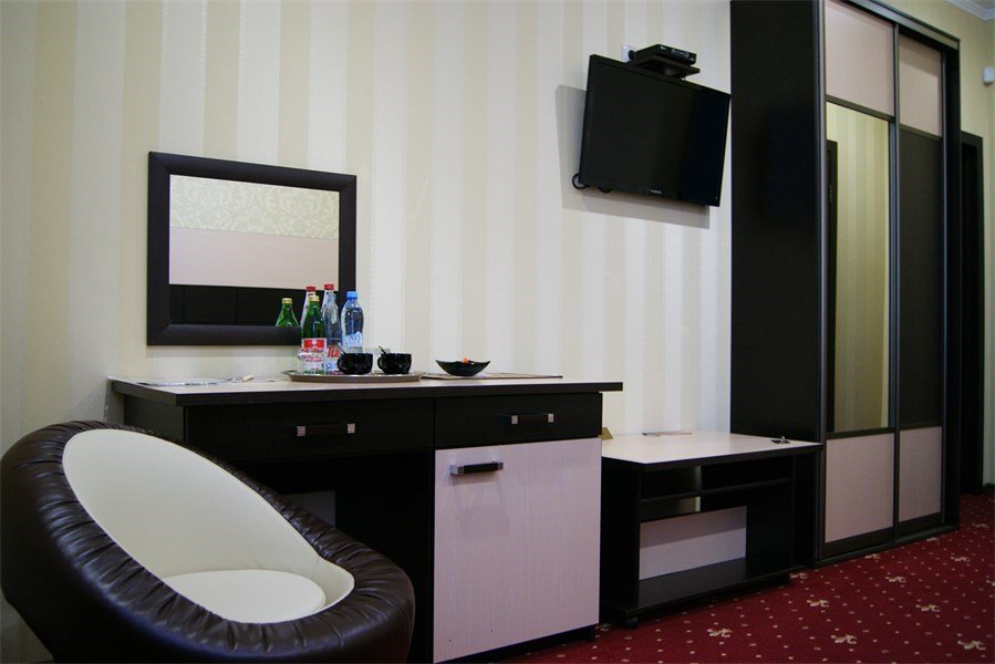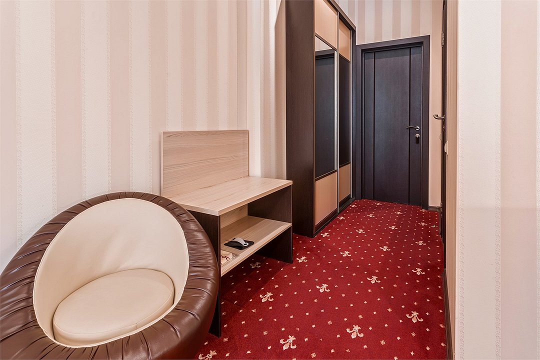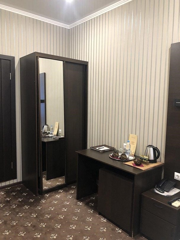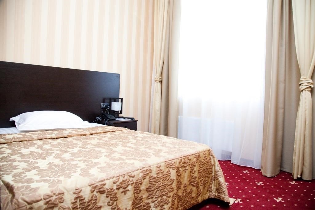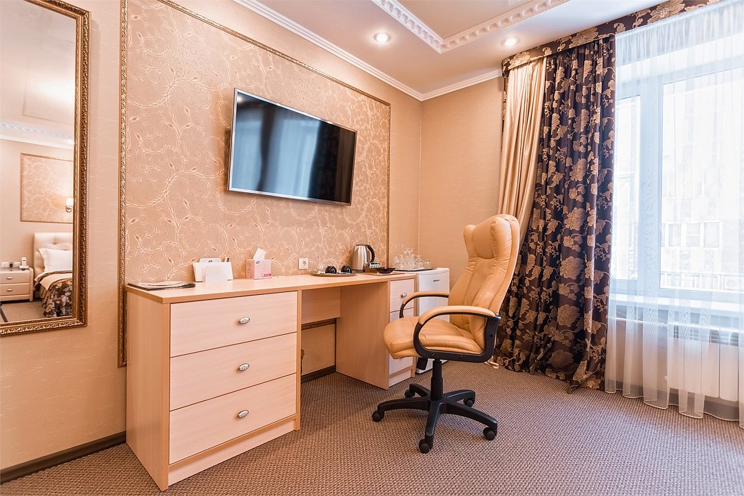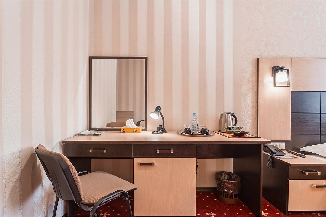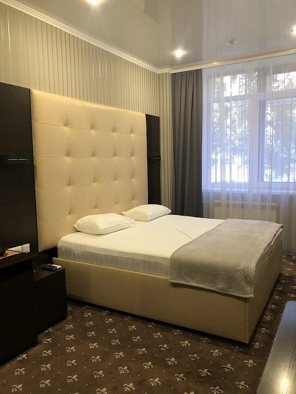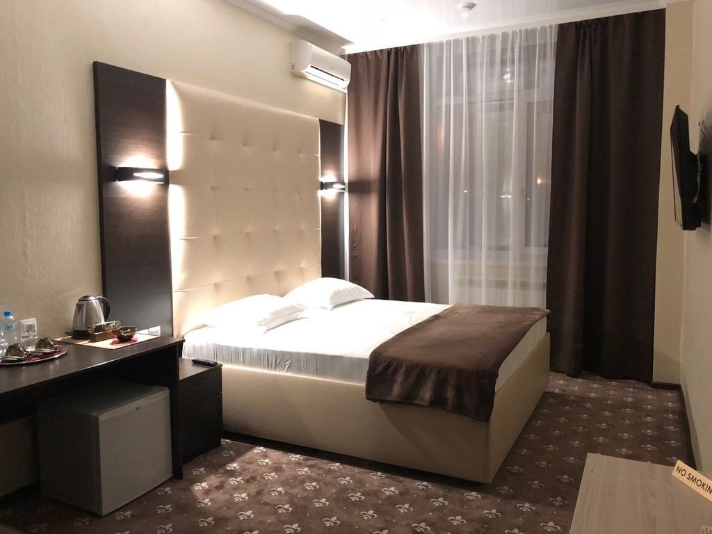 Уютный номер для размещения одного двух человек, площадью от 18 до 23 м2. В комнате: одна большая кровать, рабочая зона, стул, кресло, журнальный стол, мини-бар, чайник, сейф, телефон, настольная лампа, телевизор, багажница, шкаф-купе. В ванной комнате: туалет, душевая кабина с гидромассажем, косметическое зеркало, комплект полотенец, халат, тапочки, бесплатная продукция индивидуального пользования: мыло, шампунь, гель для душа, шапочка для душа. Комплимент от отеля - чай, кофе, сахар, вода в номере. Все номера оборудованы кондиционерами. На всей территории отеля и в каждом номере бесплатный Wi-Fi. Уборка номера, смена полотенец – ежедневно. В стоимость проживания входит завтрак по типу "шведский стол".Услуги и удобства