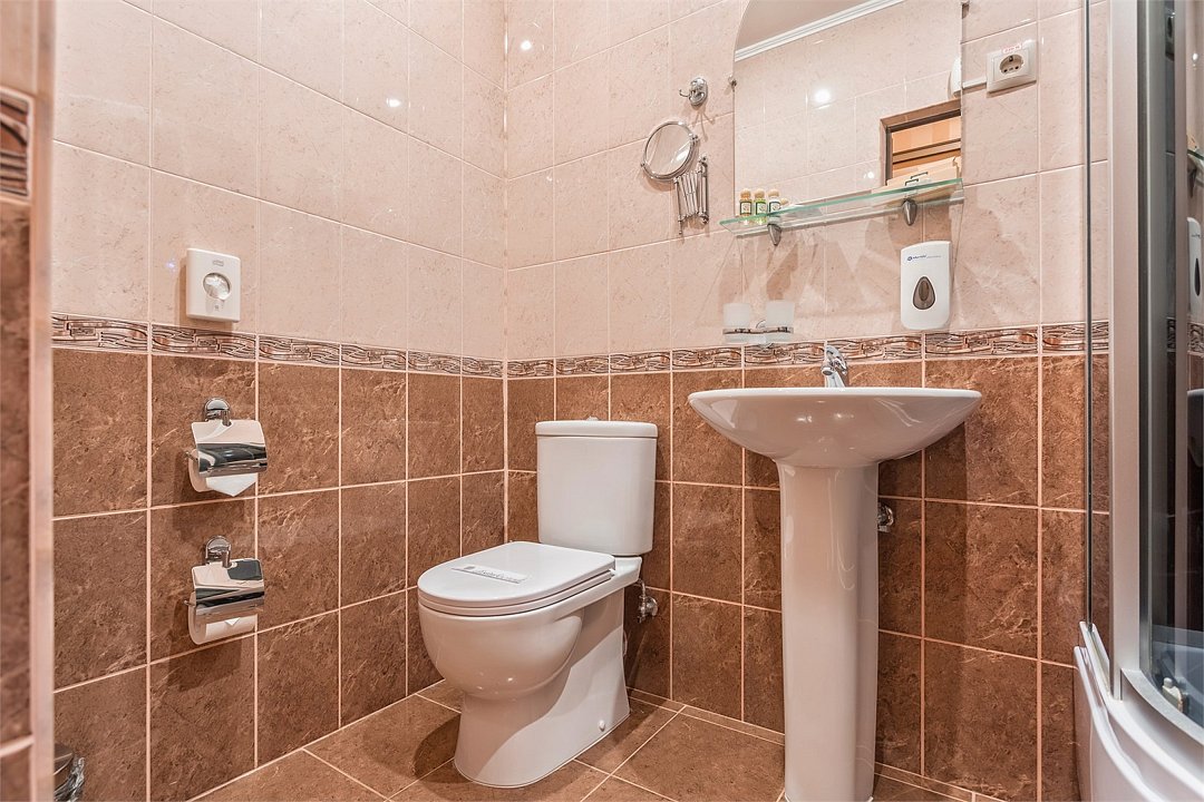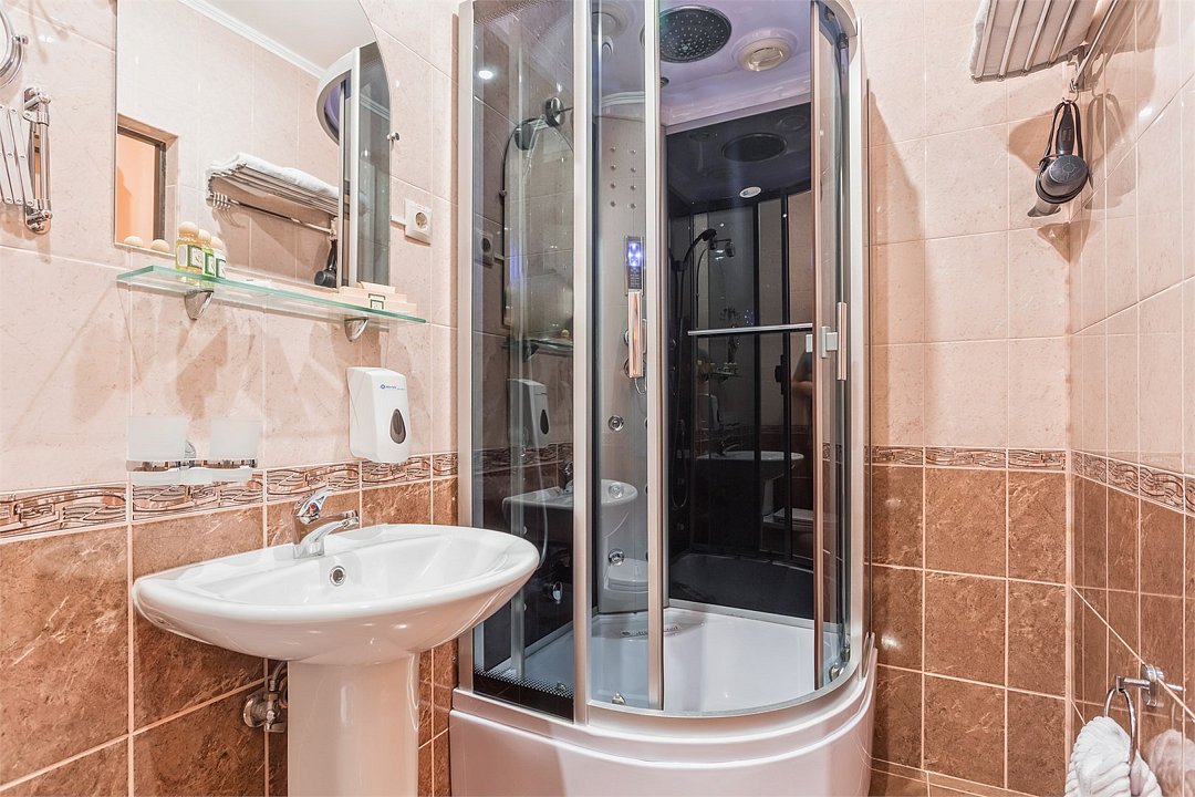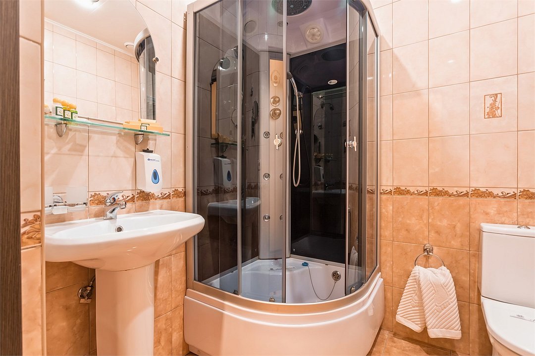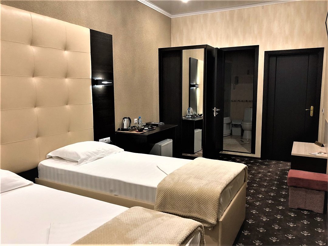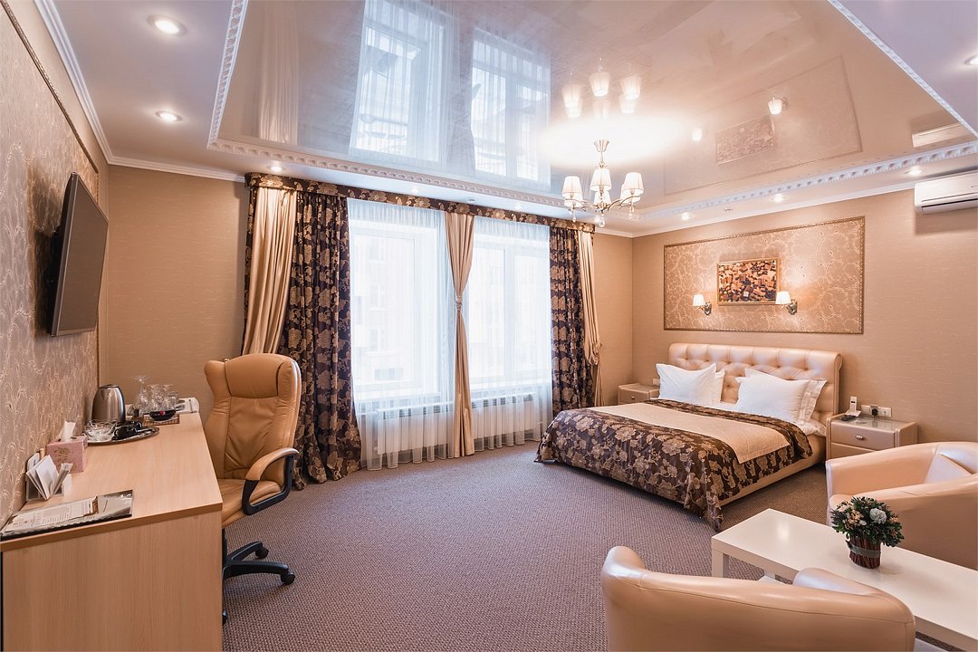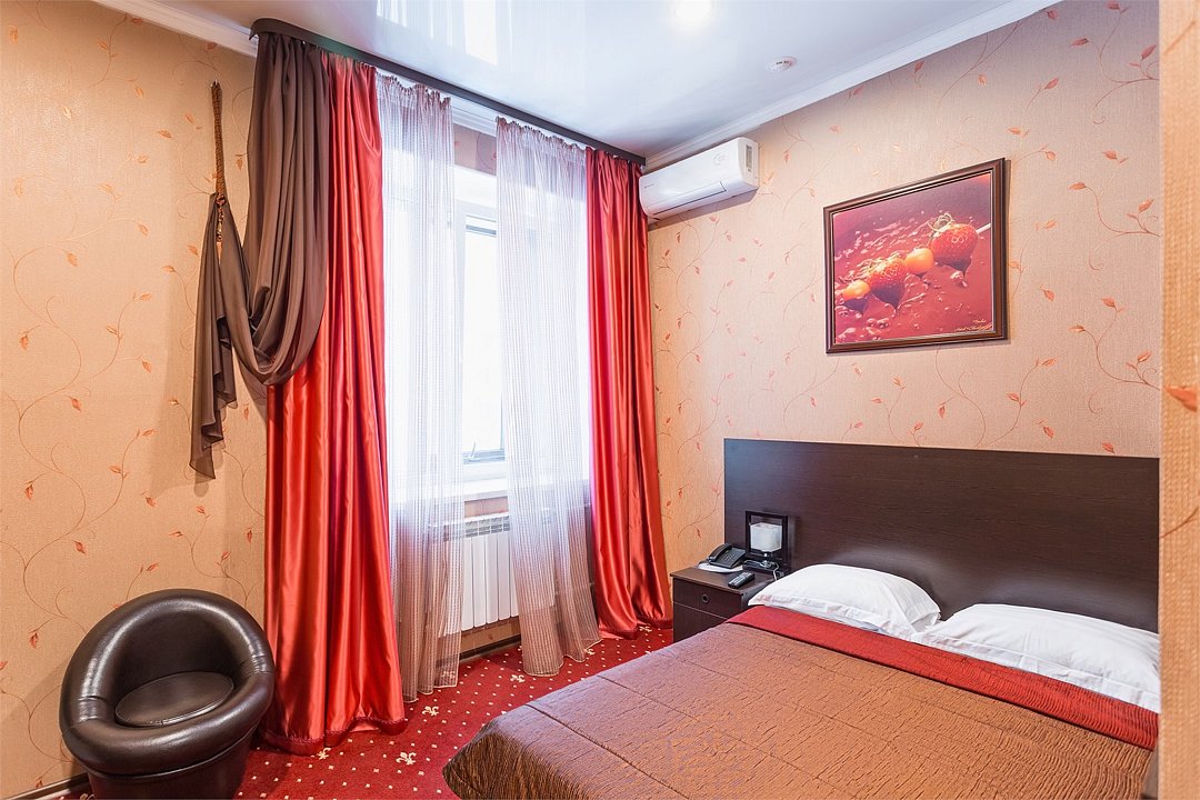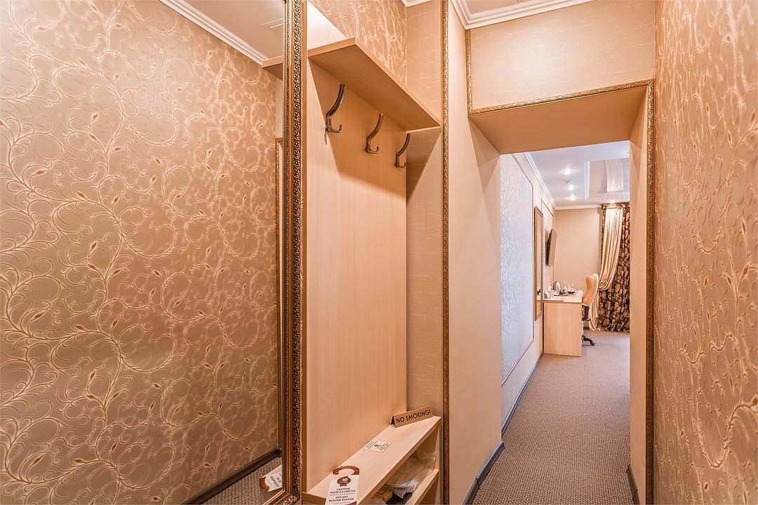 Уютный номер для размещения одного двух человек, площадью от 18 до 23 м2. В комнате: одна большая кровать, рабочая зона, стул, кресло, журнальный стол, мини-бар, чайник, сейф, телефон, настольная лампа, телевизор, багажница, шкаф-купе. В ванной комнате: туалет, душевая кабина с гидромассажем, косметическое зеркало, комплект полотенец, халат, тапочки, бесплатная продукция индивидуального пользования: мыло, шампунь, гель для душа, шапочка для душа. Комплимент от отеля - чай, кофе, сахар, вода в номере. Все номера оборудованы кондиционерами. На всей территории отеля и в каждом номере бесплатный Wi-Fi. Уборка номера, смена полотенец – ежедневно. В стоимость проживания входит завтрак по типу "шведский стол".Услуги и удобства