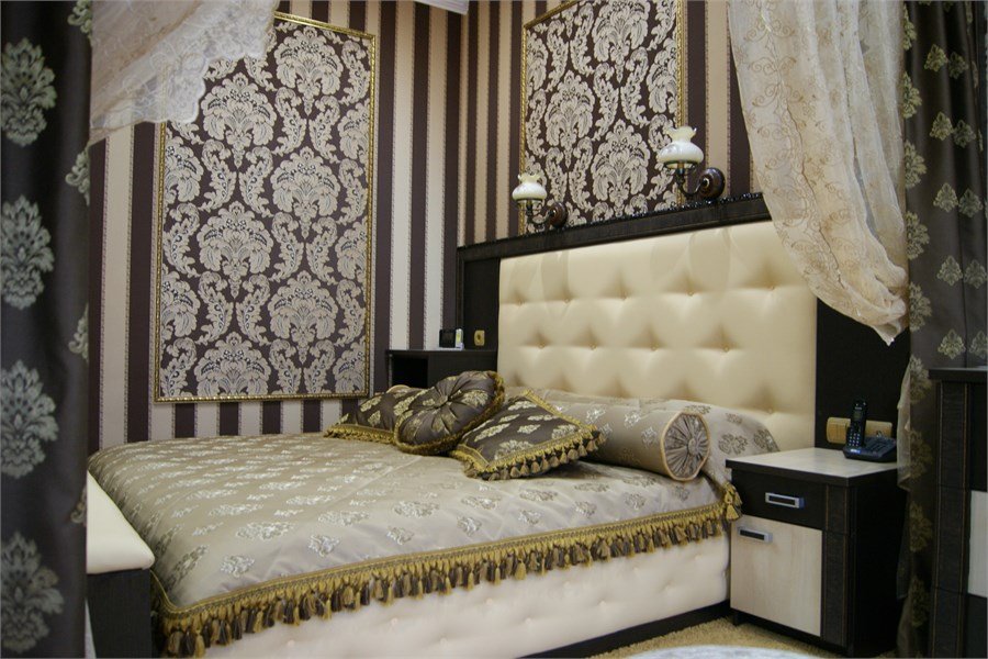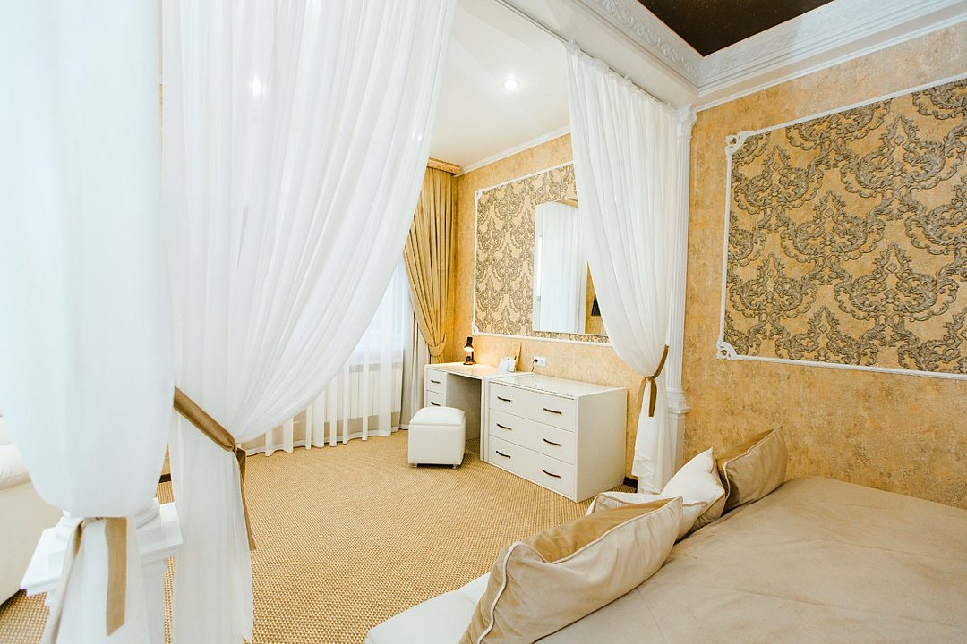 Однокомнатный номер категории "Джуниор сюит", с красивым названием «Шодо» - это древний французский десерт, который французские невесты готовили для своих женихов, он удивляет своей простотой и изысканностью. Вот так же и этот номер удивит Вас своей изысканностью и оригинальным дизайном: просторный, стильный, для размещения одного двух человек, площадью 46 м2. В комнате: коридор, одна большая комната разделенная на зоны: отдыха, рабочую и приема гостей. Одна большая кровать с прикроватными тумбочками, диван с журнальным столиком, рабочая зона с настольной лампой и письменными принадлежностями, мини-бар, чайник, кофе-машина, набор посуды, телефон, сейф, телевизор, багажница, шкаф-купе. В ванной комнате: туалет, биде, джакузи, фен, комплект полотенец, халат, тапочки, бесплатная продукция индивидуального пользования: мыло, шампунь, гель для душа, лосьон для тела, бальзам для волос, зубной набор. Комплимент от отеля - чай, кофе, сахар, вода в номере. Услуга Wi Fi бесплатна на всей территории отеля. В стоимость проживания входит завтрак по системе "шведский стол".Услуги и удобства