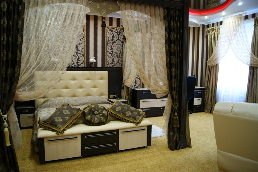 Однокомнатный просторный номер категории "ДЖуниор сюит" с вкусным названием «Чарек» - это восточная алжирская сладость, в форме месяца посыпанная сахарной пудрой. С первого взгляда обычное печенье, но попробовав этот десерт Вы окунетесь в мир восточных сказок и чудес. Вот и этот номер удивит Вас своей изысканностью и оригинальным дизайном. Он встретит Вас необыкновенной роскошью интерьера, великолепием дизайна, изысканностью стиля. Посетите этот райский уголок! Кроме этого, с заботой о Вас приготовлены белоснежные халаты, белье и полотенца, набор туалетных принадлежностей. В мини-баре, за дополнительную плату, Вы найдете освежающие прохладительные напитки, а по TV сможете выбрать любой, интересующий именно Вас, кабельный канал. Ванная комната оборудована джакузи, которая поможет Вам расслабиться после долгой дороги или трудного дня. Как видите, нет причин отказать себе в удовольствии посетить отель «ШОКОЛАД» в г. Тольятти!Услуги и удобства