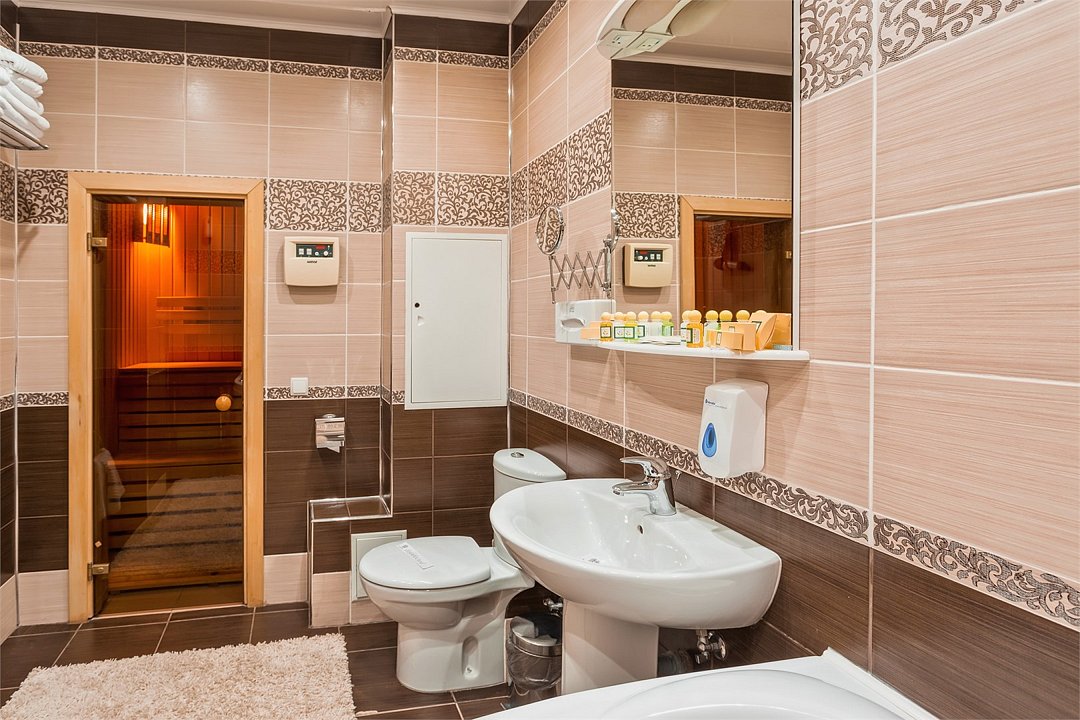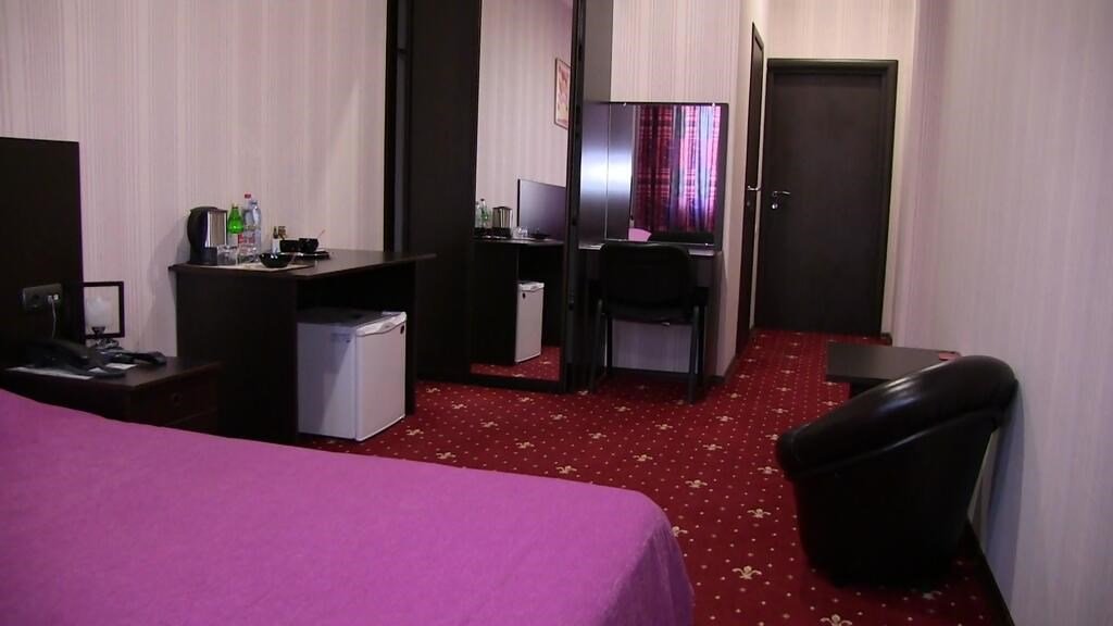 телевизор, кабельное телевидение, DVD-плеер, Wi-Fi, телефон, кондиционер, фен, ванна, сауна, мини-бар, сейф, чайникВ гостиничном номере