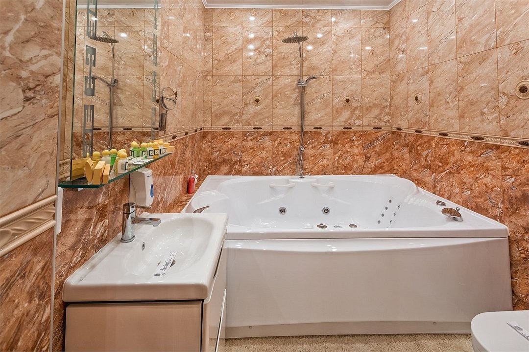 телевизор, кабельное телевидение, Wi-Fi, телефон, кондиционер, фен, гидромассажная ванна, кровать «Queen size», диван, вешалки, журнальный столик, зеркало, пуфики, мини-бар, письменные принадлежности, набор посуды, обслуживание номеров, сейф, минеральная вода, чайник, мягкая мебель, косметическое зеркало, ковровое покрытие, отопление, кресло, вид во двор, высокие потолки, стаканы, туалетный столик, туалетный столик, шкаф-купе, номер для некурящих, пуфик, рабочий стол, двуспальный раскладной диван-кроватьВ гостиничном номере