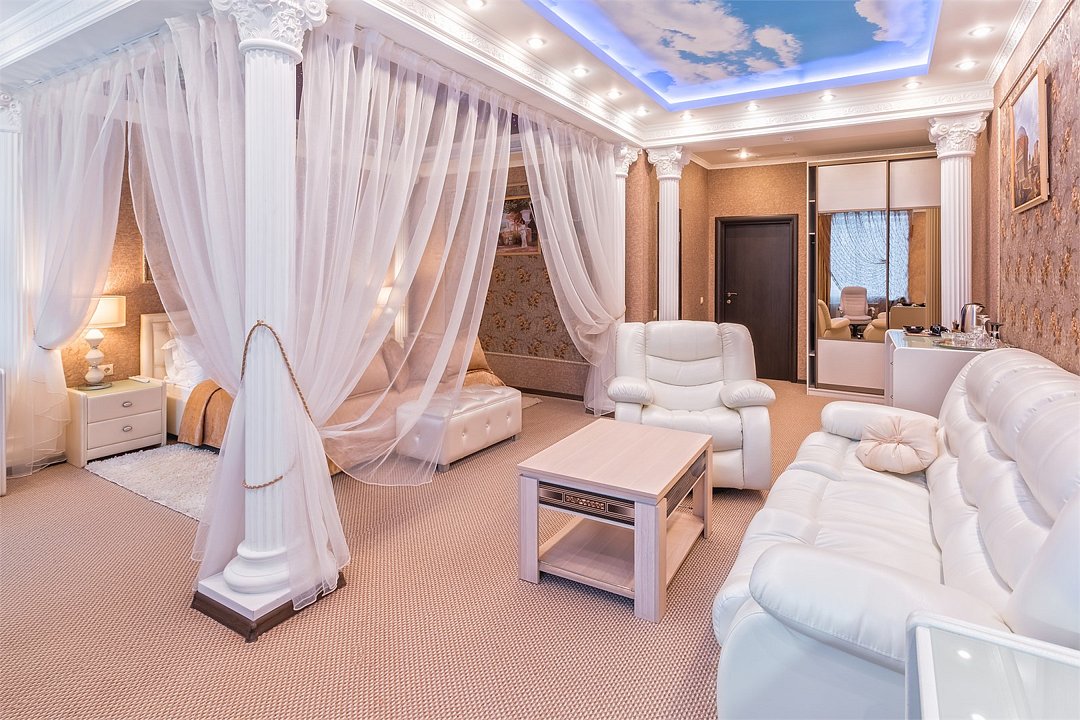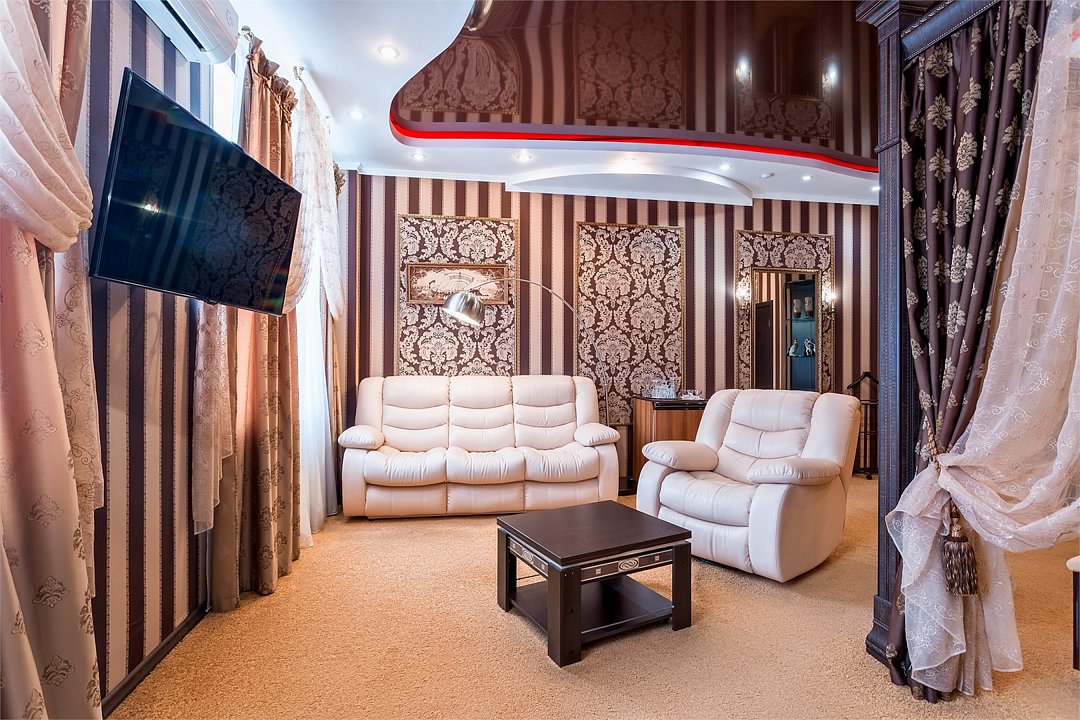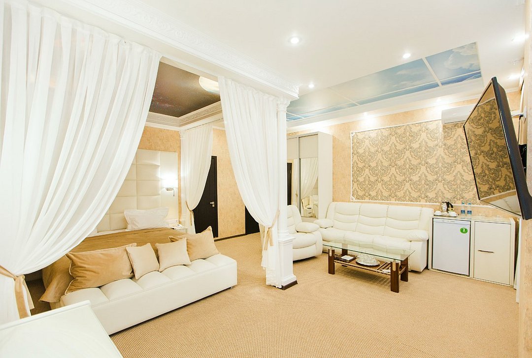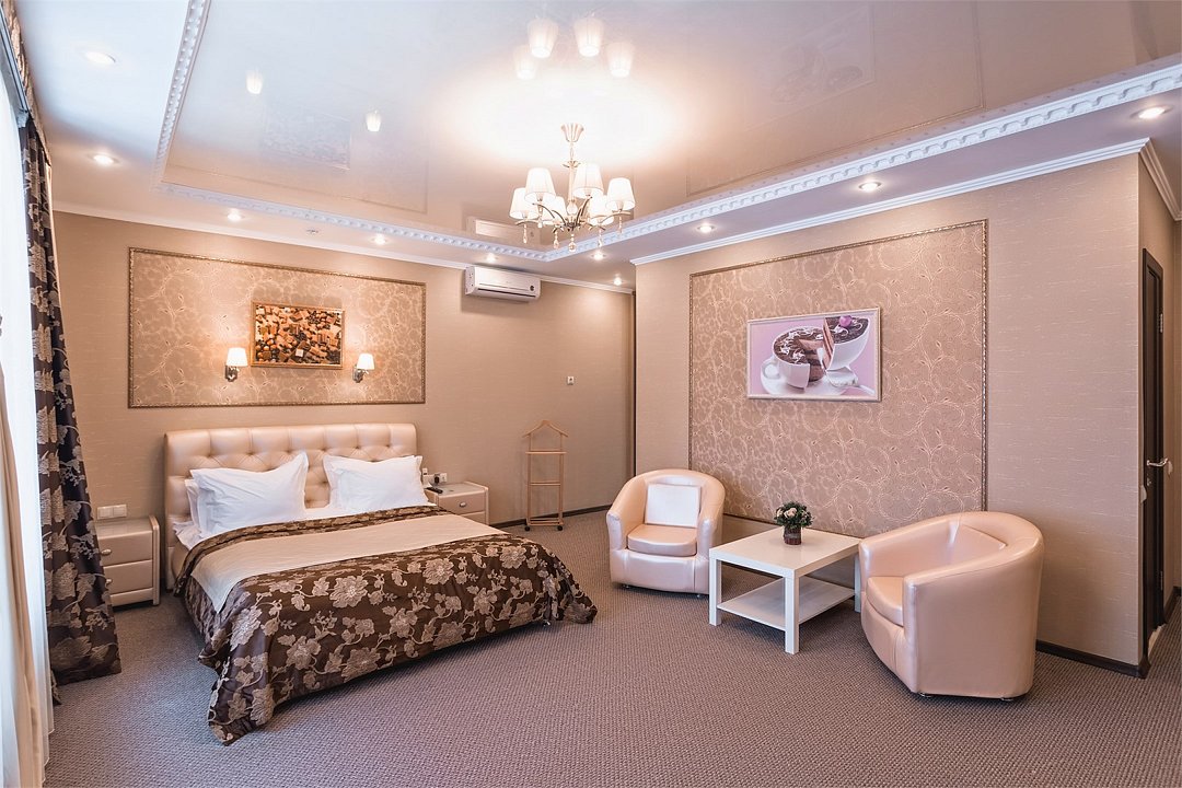 Однокомнатный номер категории "Джуниор сюит" «Сладкая жизнь» в отеле «ШОКОЛАД» - само совершенство! Он встретит Вас необыкновенной роскошью интерьера, великолепием дизайна, изысканностью стиля. А индивидуальная сауна позволит расслабиться и отдохнуть. Посетите этот райский уголок! Кроме этого, с заботой о Вас приготовлены белоснежные белье и полотенца, набор туалетных принадлежностей. В мини-баре, за дополнительную плату, Вы найдете освежающие прохладительные напитки, а по TV сможете выбрать любой, интересующий именно Вас, кабельный канал. Ванная комната оборудована индивидуальной сауной, современной сантехникой, в том числе ванной джакузи. Завтрак по типу "шведский стол" входит в стоимость проживания.Услуги и удобства