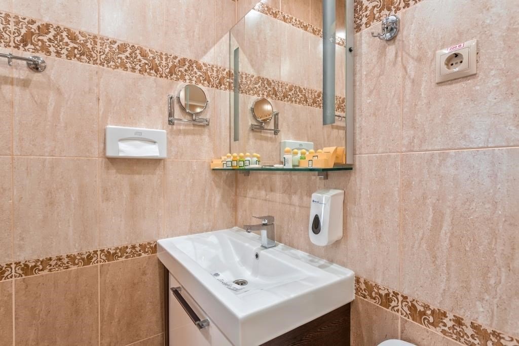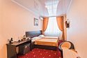 Уютный номер для одноместного размещения, площадью от 15 до 20 м2. В комнате: одна большая кровать, рабочая зона, стул, кресло, журнальный стол, мини-бар, чайник, сейф, телефон, настольная лампа, телевизор, багажница, шкаф-купе. В ванной комнате: туалет, душевая кабина с гидромассажем, косметическое зеркало, комплект полотенец, халат, тапочки, бесплатная продукция индивидуального пользования: мыло, шампунь, гель для душа, шапочка для душа. Комплимент от отеля - чай, кофе, сахар, вода в номере. Все номера оборудованы кондиционерами. На всей территории отеля и в каждом номере бесплатный Wi-Fi. Уборка номера, смена полотенец – ежедневно. В стоимость проживания входит завтрак по типу "шведский стол".Услуги и удобства