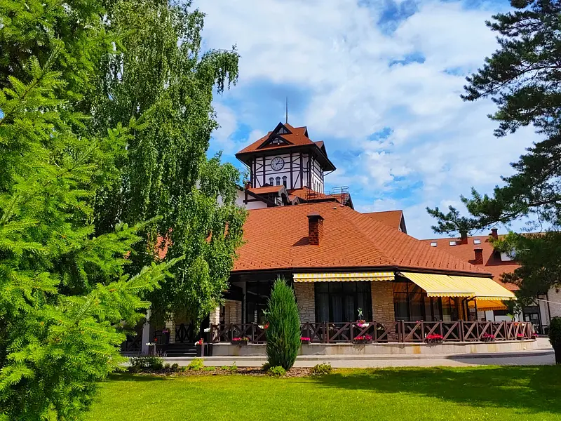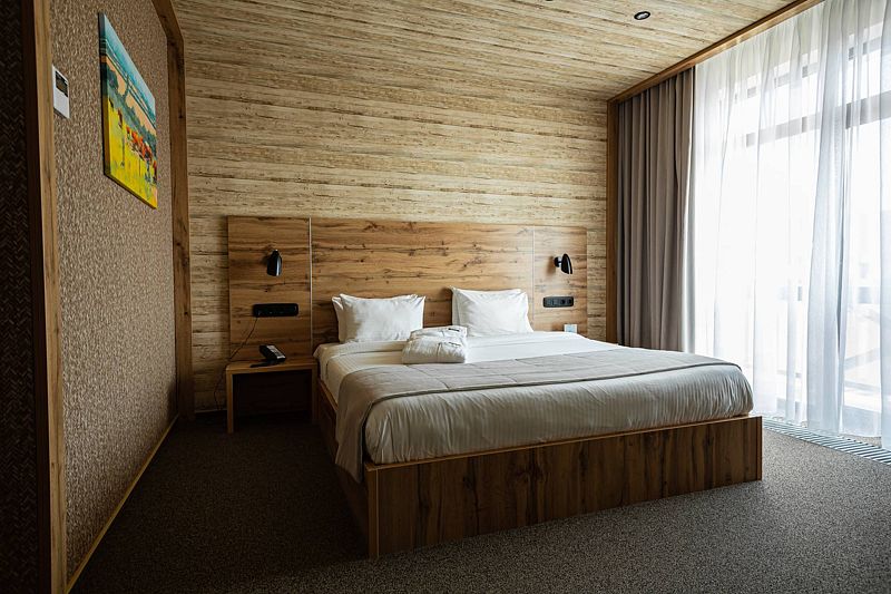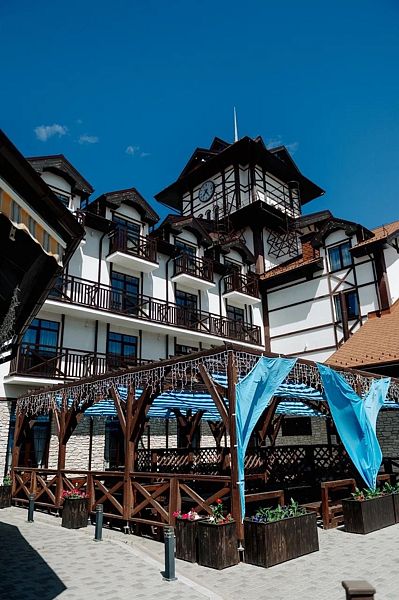 Семейный отдыхДостоинстваПонравилось много всего, но почти все это с пометками. Жили в двух этажном доме, дом большой и удобный. Но не особо чистый. Диван с разводами, мебель потертая, матрасы и подушки не очень удобные. Из хорошего убирались каждый день, полотенца меняли каждый день и воду приносили каждый день. Но. Уборка такая поверхностная. Аква зона хорошая, с детьми комфортно. Единственное это фены, их много и через один перегреваются и выключаются или дуют холодным воздухом. Ресторан Вершина хороший, вкусное меню. Завтраки тоже неплохие, есть из чего выбрать. Единственное что не понравилось это то что нет детской площадки на территории. Вернее она есть, но там где аквапарк. Мы заехали 4 сентября, аквапарк закрыт и площадка тоже. Детям на территории скучно . Ну и территория очень небольшая, заняться не чем
