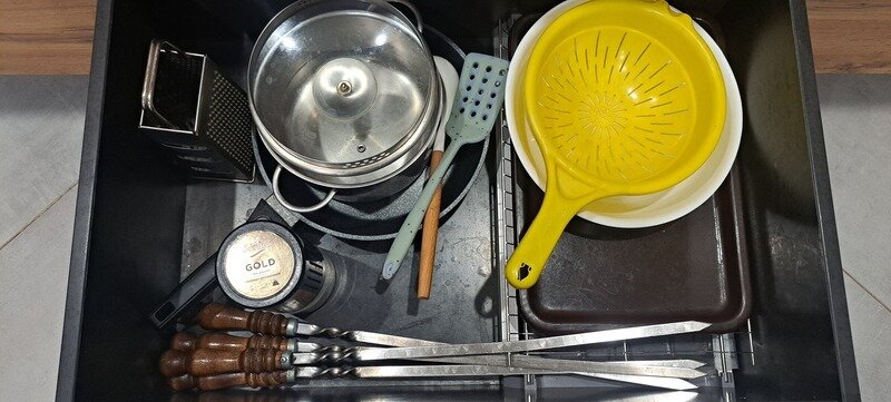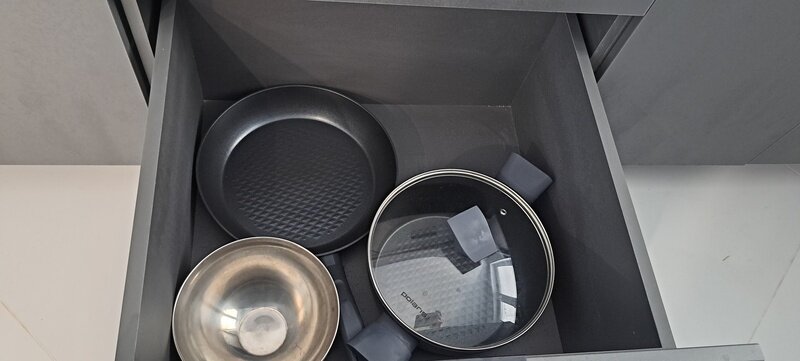 - чайник, микроволновка, холодильник, приборы , посуда.