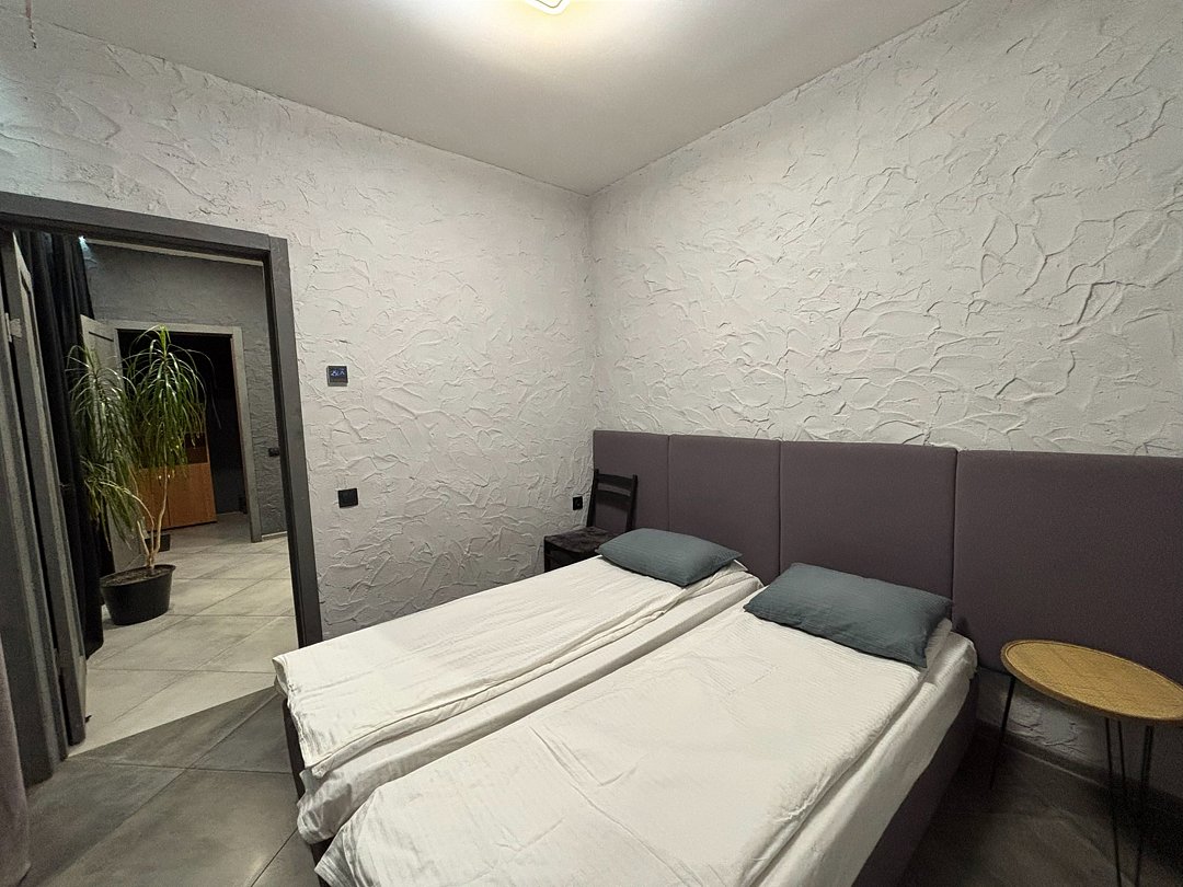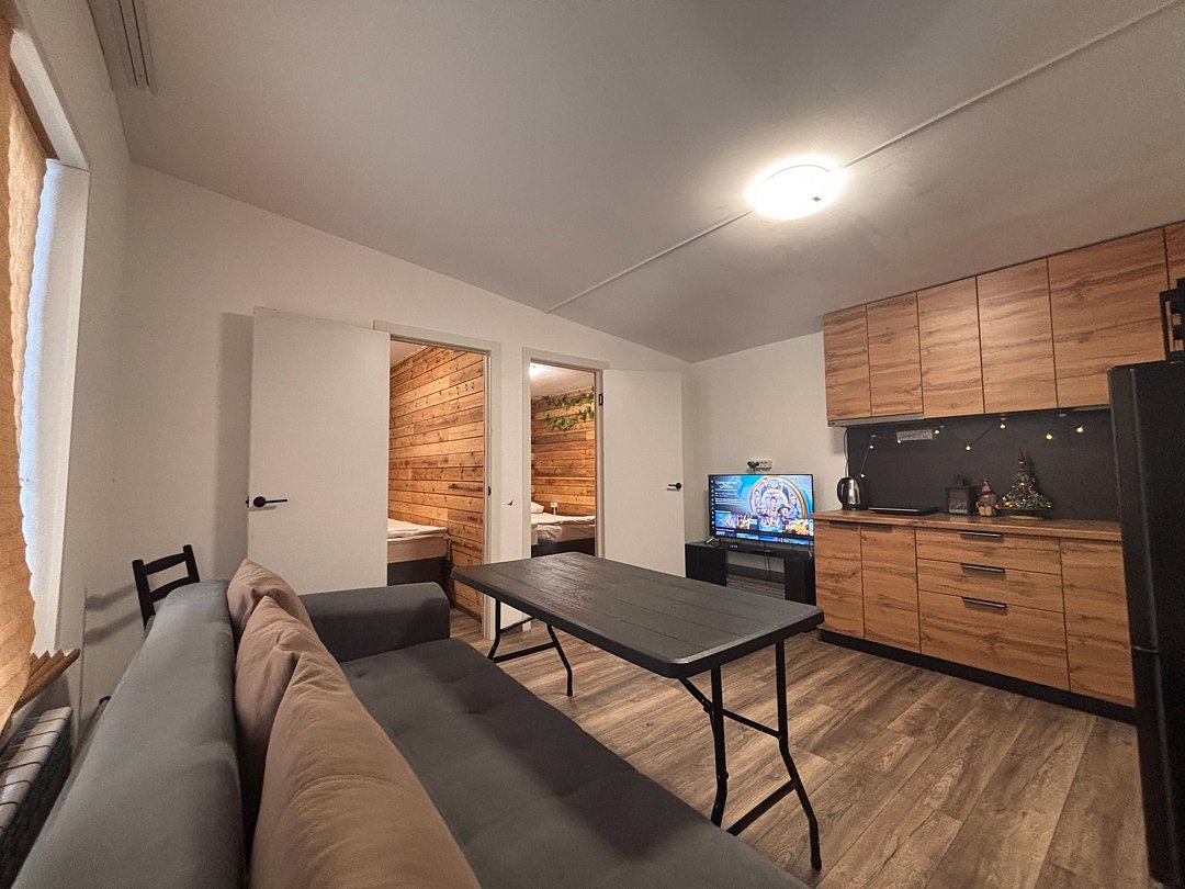 Уютный номер вместимостью до 4 человек. Две спальни с односпальными кроватями и диван. Возможны детские места сверх 4-х основных (диван).