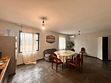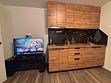 Оснащение: диван, большой стол, стулья, настенный телевизор, кухонный уголок с чайником, микроволновкой, плиткой и набором посуды, односпальные кровати и туалетные принадлежности.