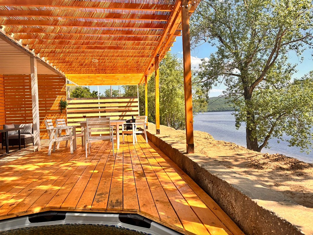 Новый дом с выходом на пляж прямо с веранды и шикарным видом на Жигулевские горы. Сдается только под семейный отдых.