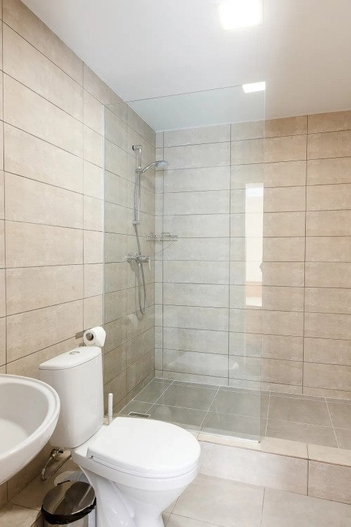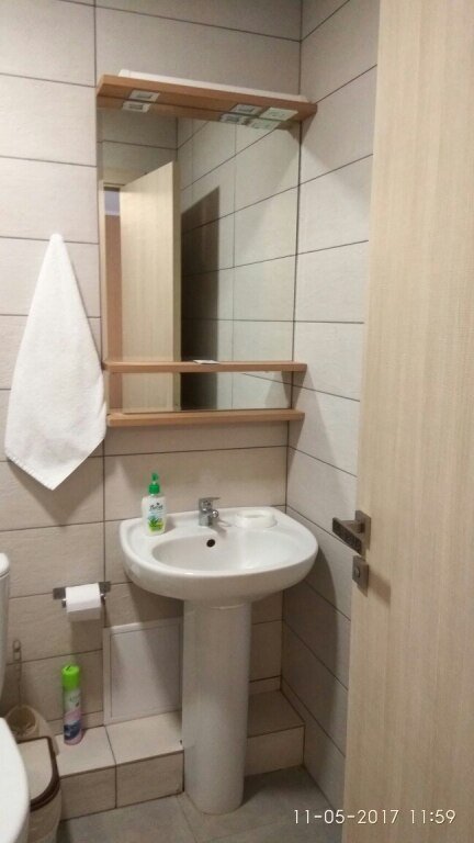 Плоский телевизор, кондиционер, холодильник, шкаф для одежды. В ванной комнате душевая кабина, косметические принадлежности, фен.