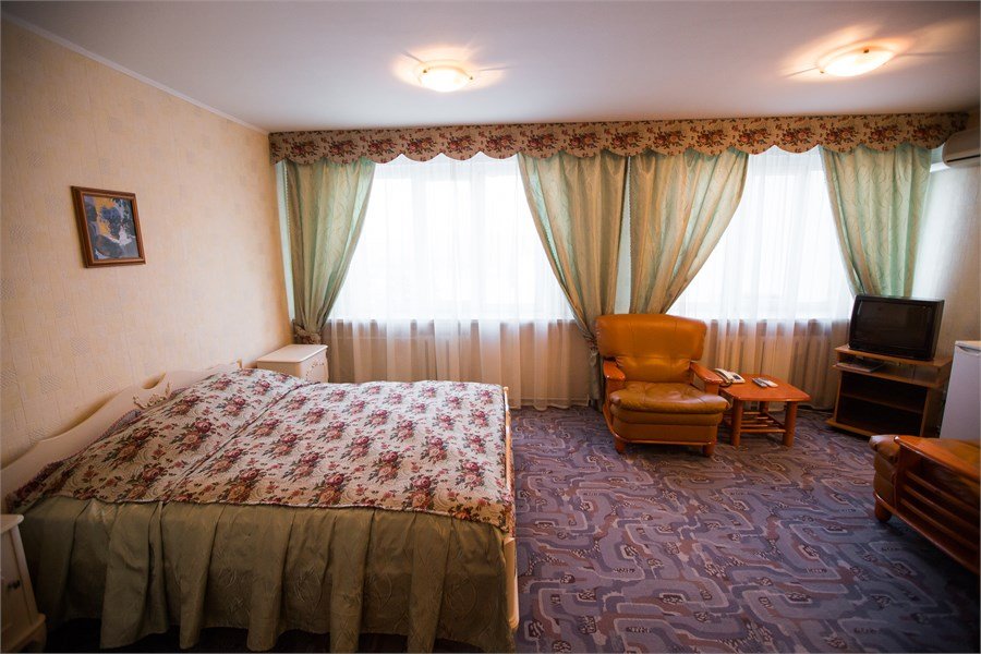 Путешествие с семьейОтличная гостиница.Отличная гостиница. Просторный уютный номер, в номере все удобства. Единственное - не помешал бы чайник. Но его нет. Но есть стаканы. Уборка каждый день. По два полотенца на каждого, смена полотенец каждый день. В гостинице свой ресторан, завтрак входит в стоимость проживания, завтрак - шведский стол. Гостиница в центре города, удобное расположение. Персонал вежливый. В общем, остались довольны, все понравилось.