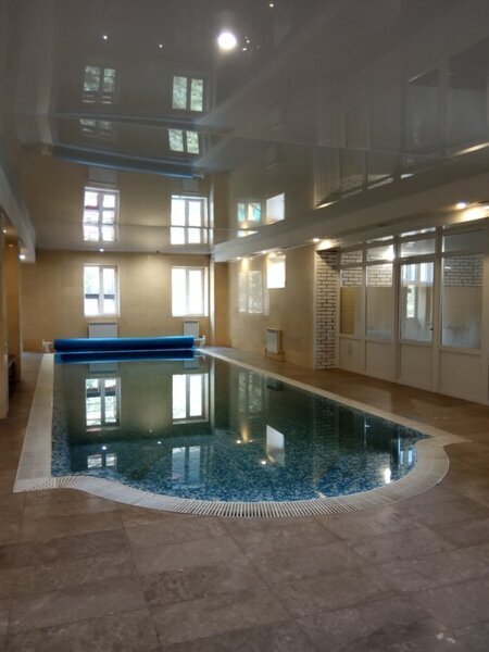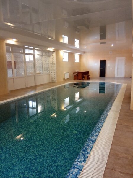 Бассейн отделан мрамором. Пол бассейна отделан нескользящим мрамором, предназначенным для отделки саун и бассейнов. Для посетителей предусмотрена удобная раздевалка.