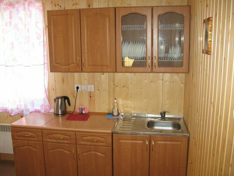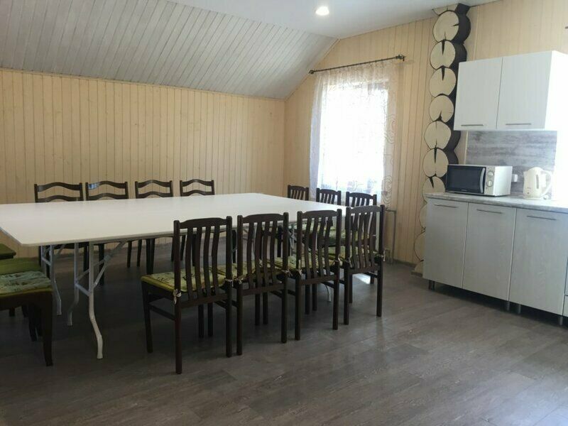 - кухня с холодильником, чайником, посудой на 10 персон,