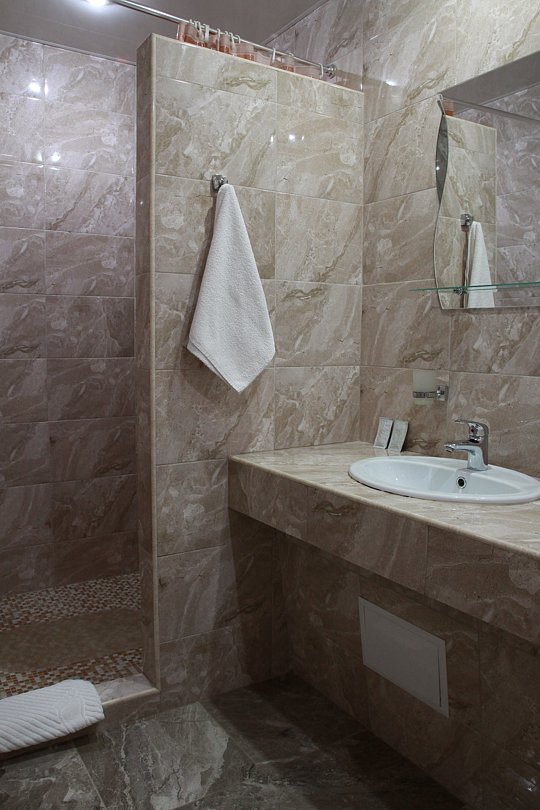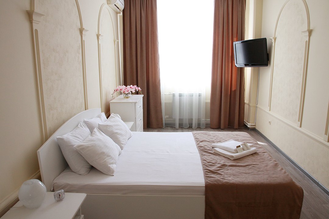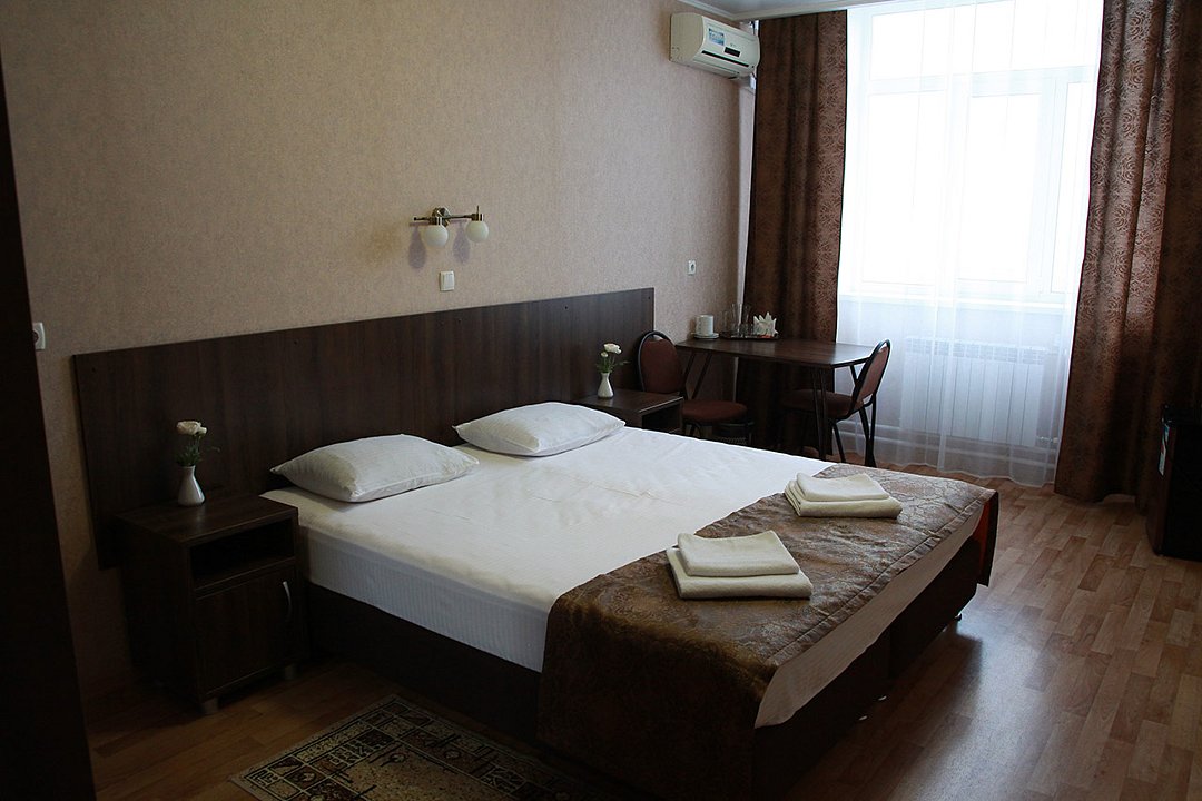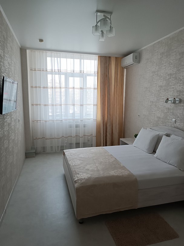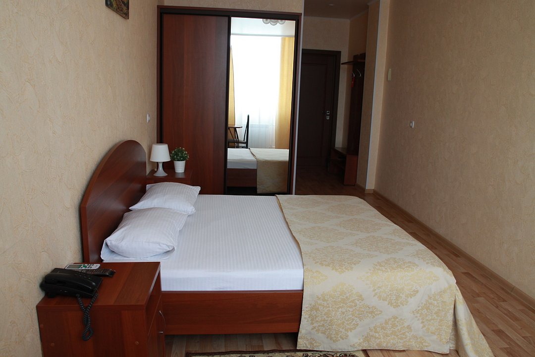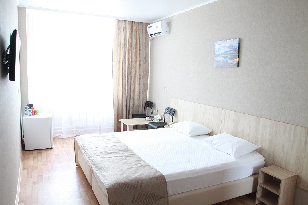 Комфорт с двухспальной кроватью. В номере плазменный телевизор, холодильник, мини-бар, стол, стулья, тумбочки, шкаф. Ванная комната с ванными принадлежностями. Кондиционер.