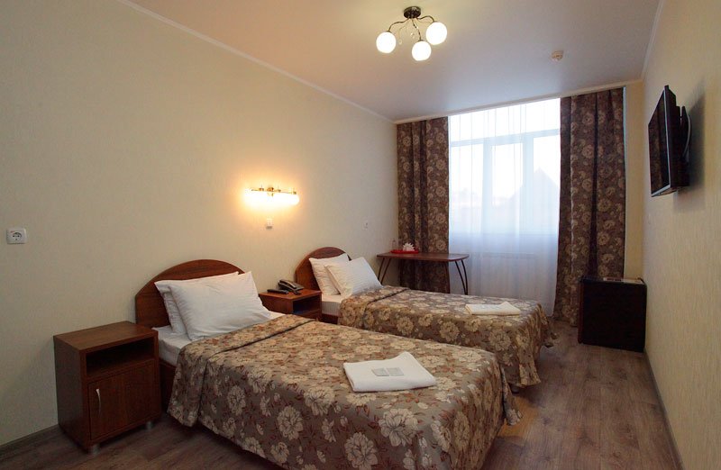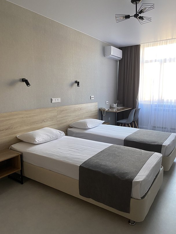 Комфорт с двумя 1-но спальными кроватями. В номере плазменный телевизор, холодильник,мини-бар, стол, стулья, тумбочки, шкаф. Ванная комната с ванными принадлежностями. Кондиционер.