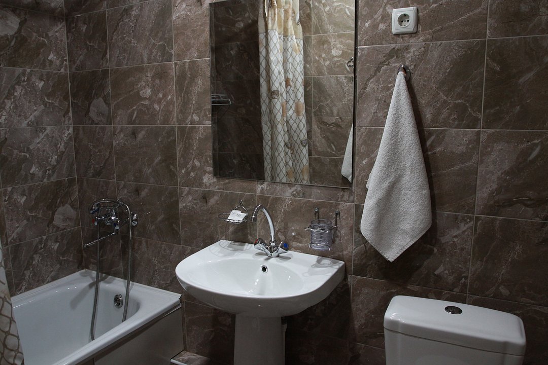 В номере 3 кровати . Шкаф,тумбочки,стол,стулья.кондиционер,холодильник, ЖК телевизор, телефон. Ванная комната, мыло,гель,шампунь, полотенца.