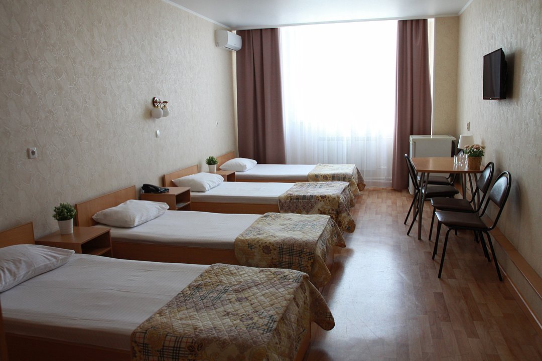 Четырехместный стандарт. В номере 4 кровати, шкаф,тумбочки,стол,стулья, телевизор, кондиционер, холодильник. Ванная комната с ванными принадлежностями.
