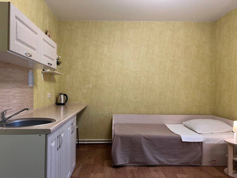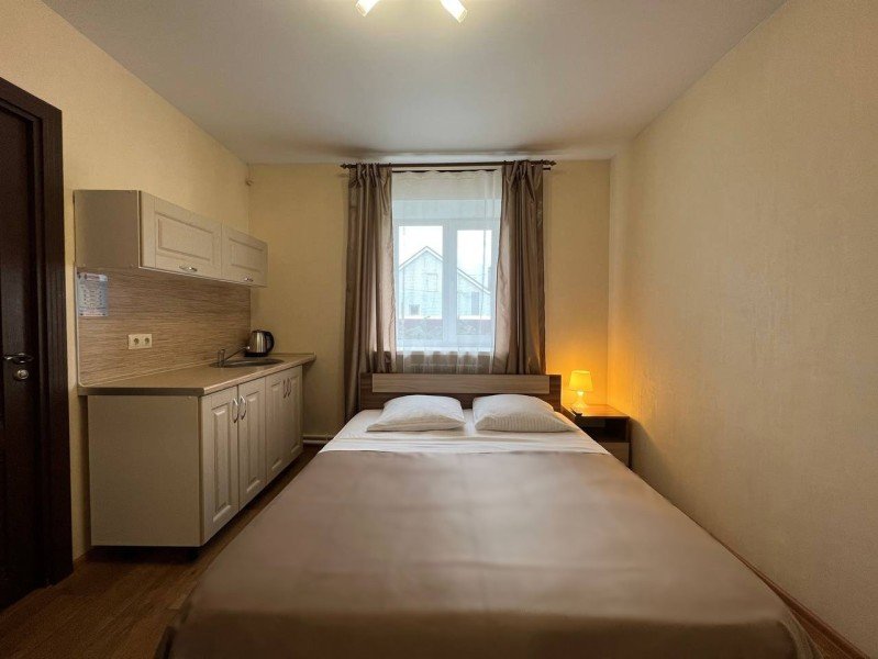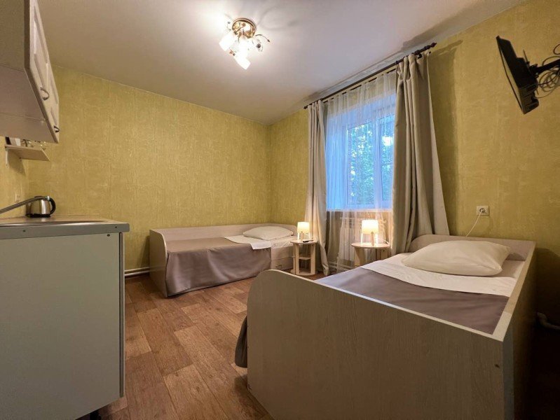 Номер стандарт, 12 м2, оснащен мини-кухней: плита, чайник, вся необходимая посуда.