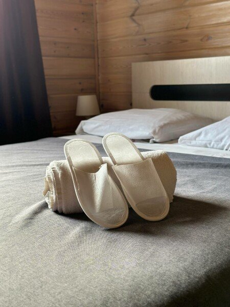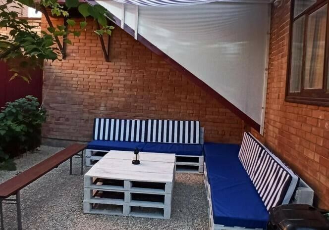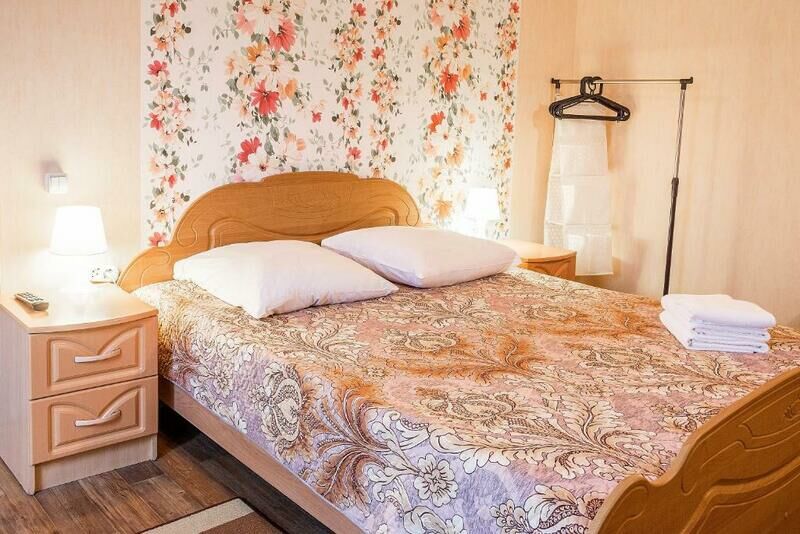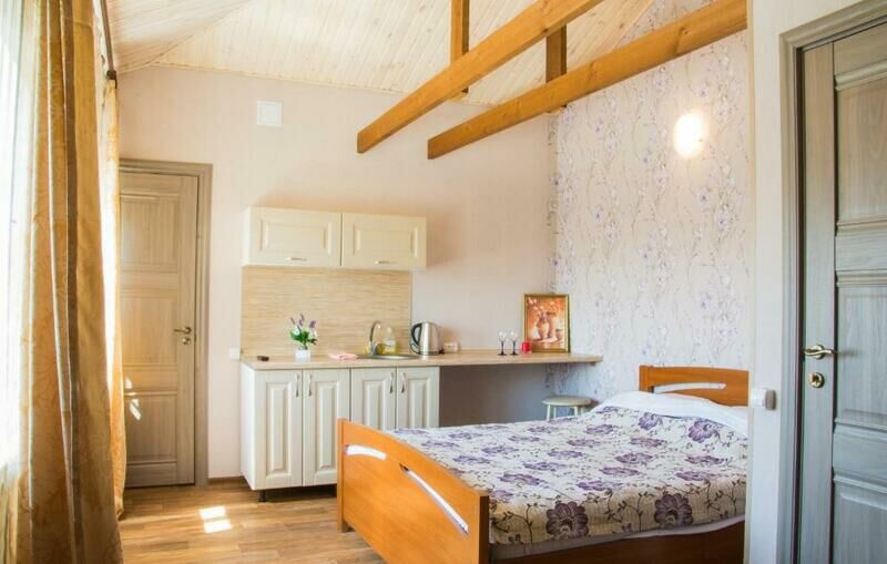 Гостевой дом представляет собой двухэтажное здание, в котором расположены 10 комфортных номеров. В номерах имеется небольшая кухонная зона с необходимым набором посуды, телевизор, современный санузел с душем и туалетными принадлежностями. На первом этаже в распоряжении отдыхающих стиральная машина, холодильник, гладильная доска и утюг, кулер с горячей и холодной водой, микроволновая печь, детский стульчик для кормления. На территории гостям доступны мангал и уютная зона для барбекю, баня-бочка, собственная парковка и детская площадка. Работает Wi-FI.