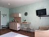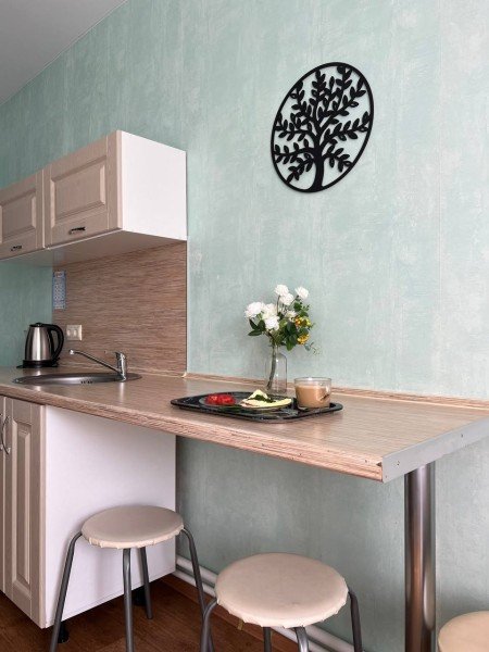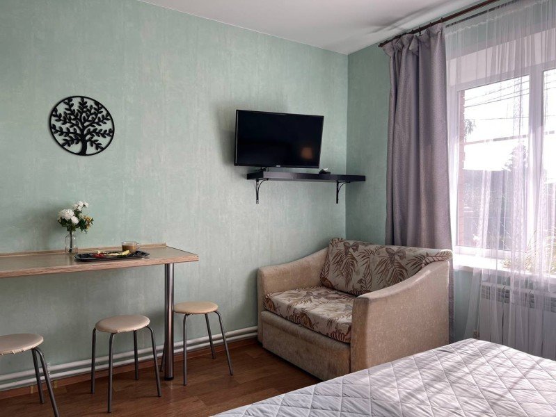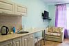 Номер стандарт, 16 м2, оснащен: мини-кухней: плита, чайник, вся необходимая посуда. Приятный бонус в виде чая и конфет.