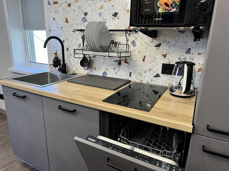 В домике предусмотрены: TV, чайник, холодильник, микроволновка, сервировочная посуда, уличный пластиковый стол. Плита,сковороды и кастрюли не предоставляются.