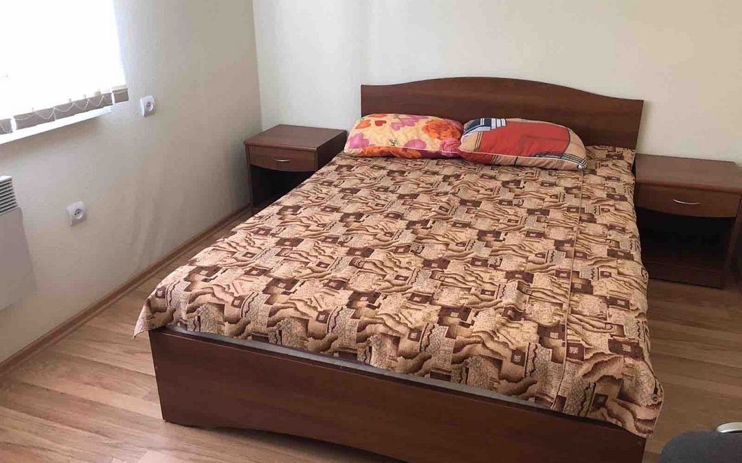 В номере: письменный стол, платяной шкаф, прикроватная тумбочка, телевизор. На окнах москитные сетки. На полу – ковровое покрытие. На окнах москитные сетки.