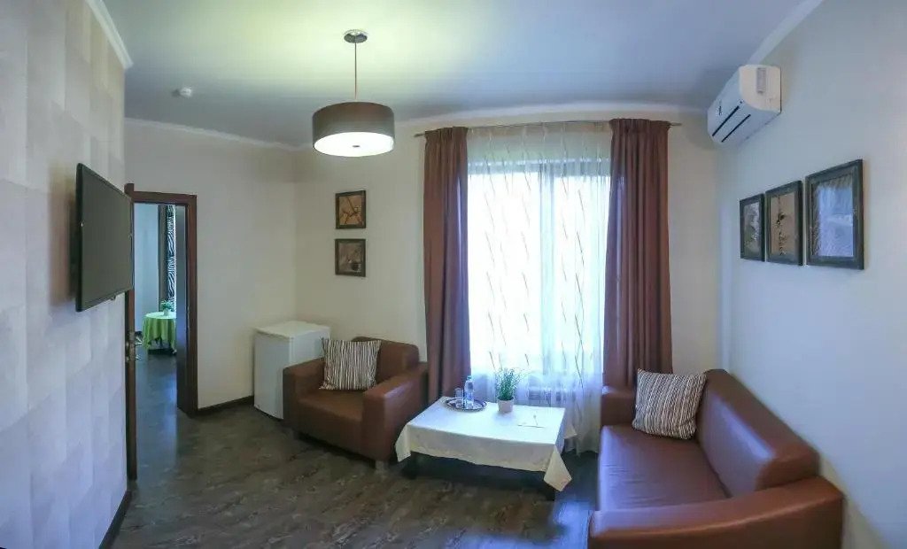 В номере гостей ждут телевизор и халат. Перечисленные услуги есть не во всех номерах.