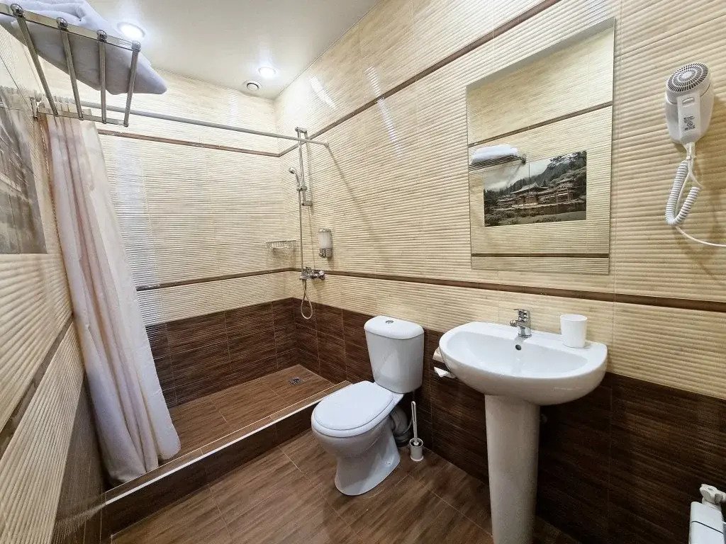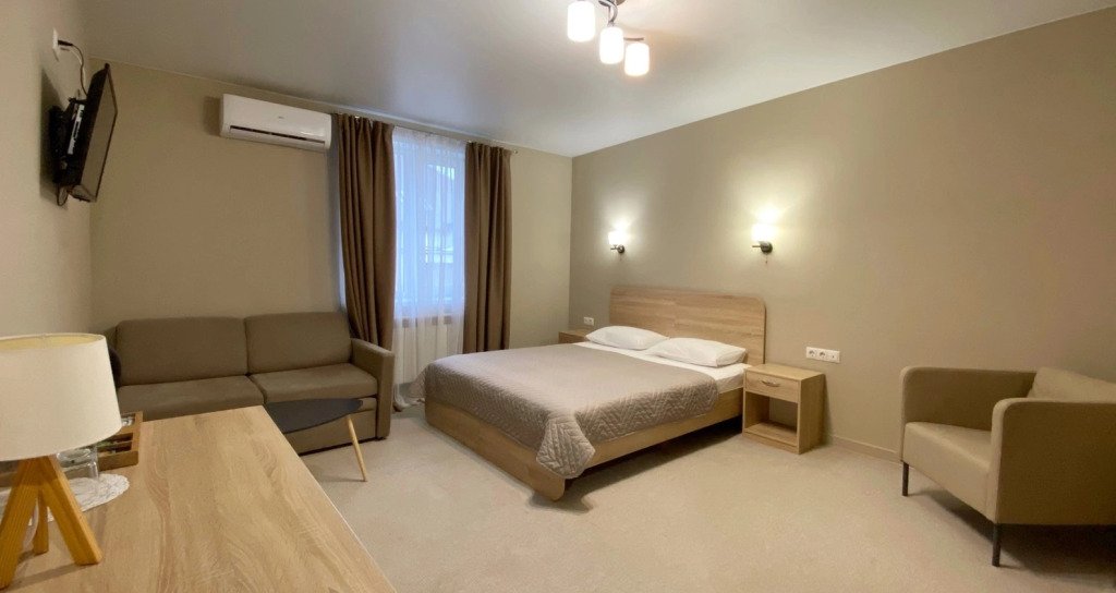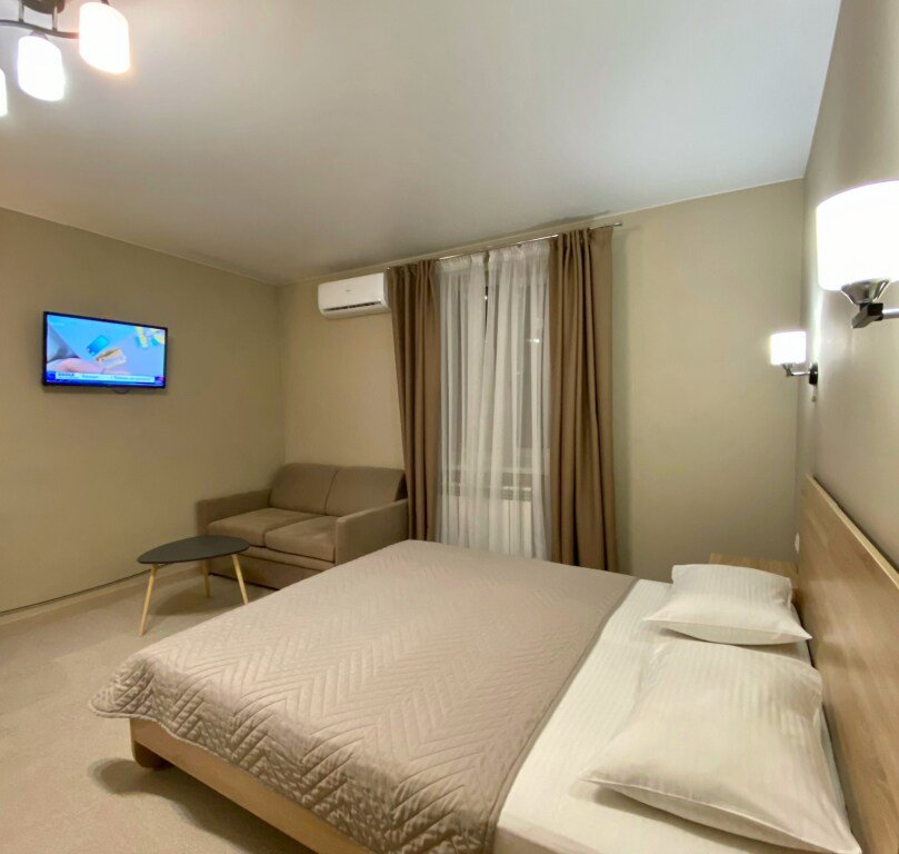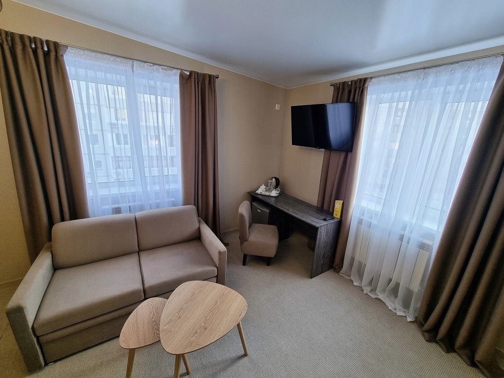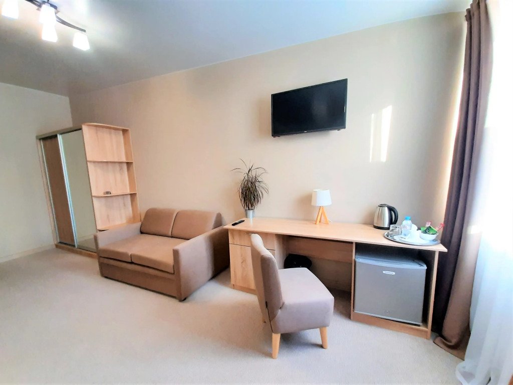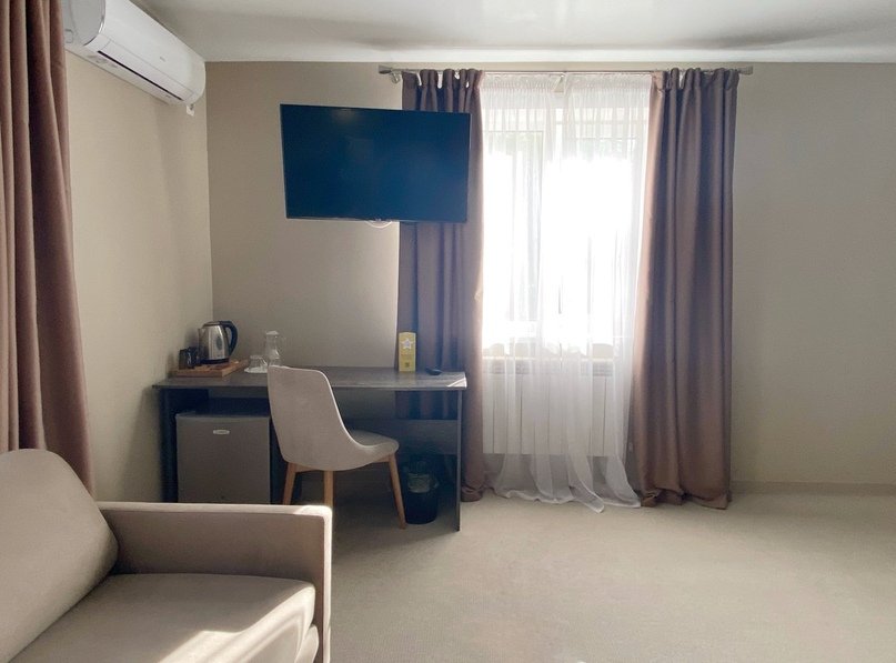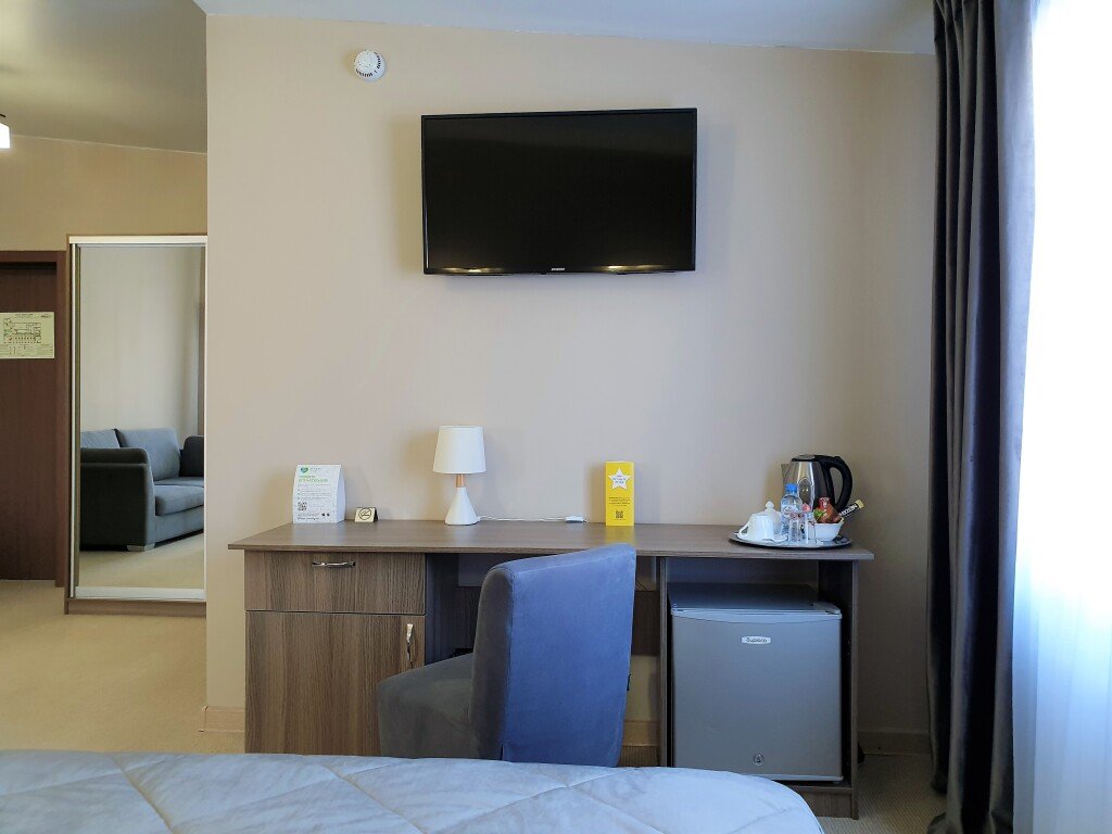Номер уютно обставлен и оснащён необходимым, чтобы отдохнуть после долгого и насыщенного дня. Имеются телевизор и халат. Перечисленные услуги есть не во всех номерах.