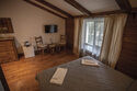 Полулюкс Шале с двуспальной кроватью: зал, спальня, спутниковое TV, мягкая мебель, двуспальная кровать, чайник.
