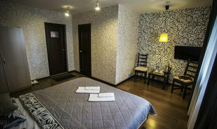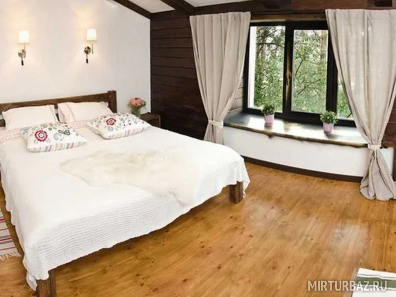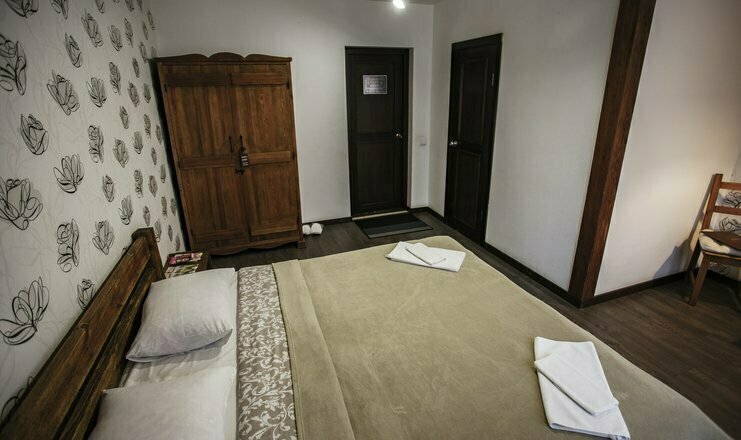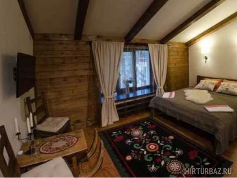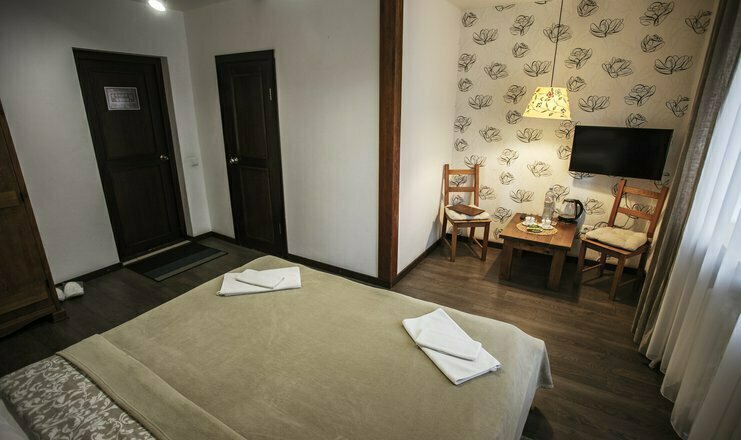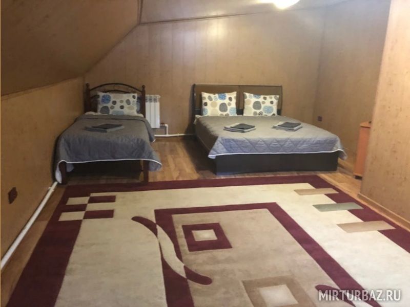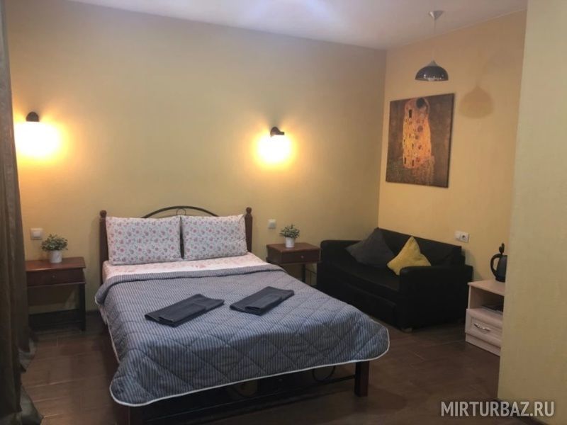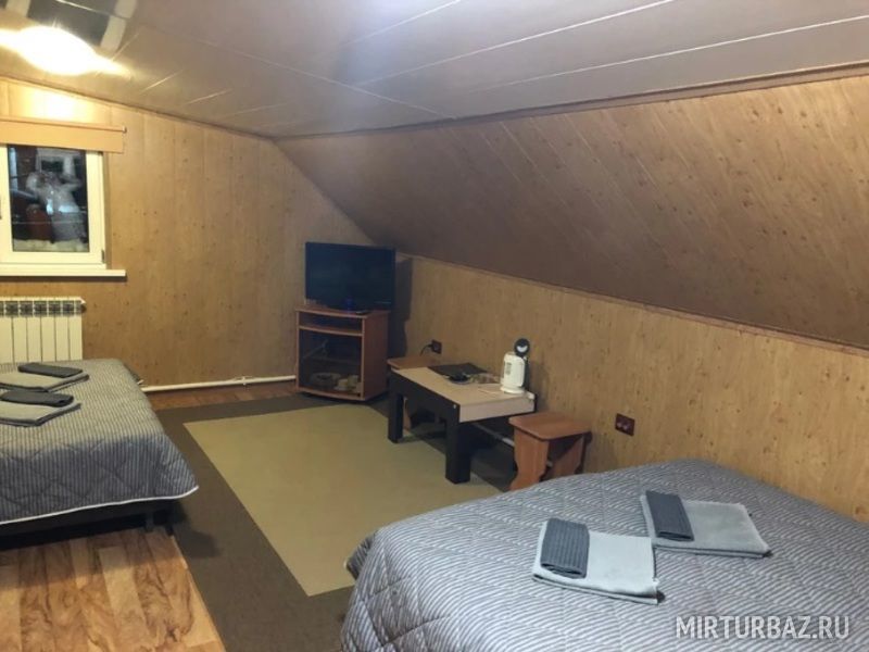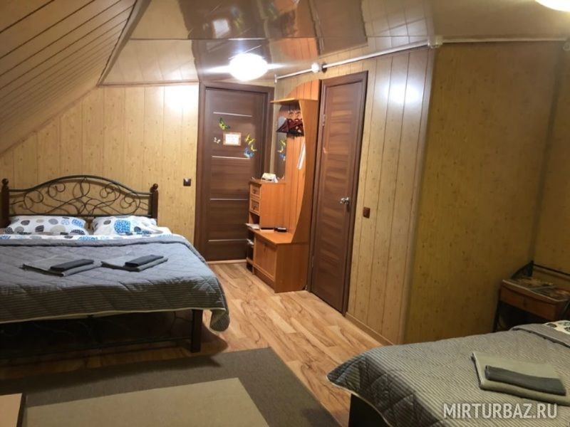 В доме 4 номера с двуспальными кроватями, спутниковым TV, диваном, санузлом с душем, чайником.