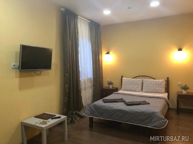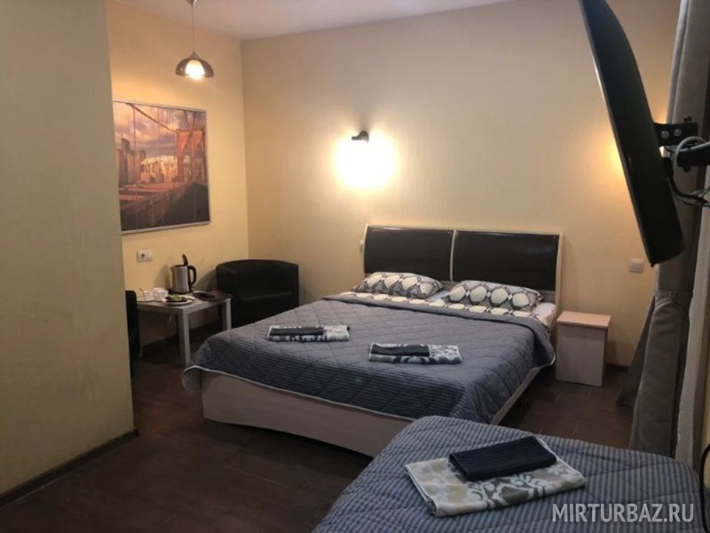 В номере: двуспальная кровать, спутниковое TV, диван, санузел с душем, чайник.