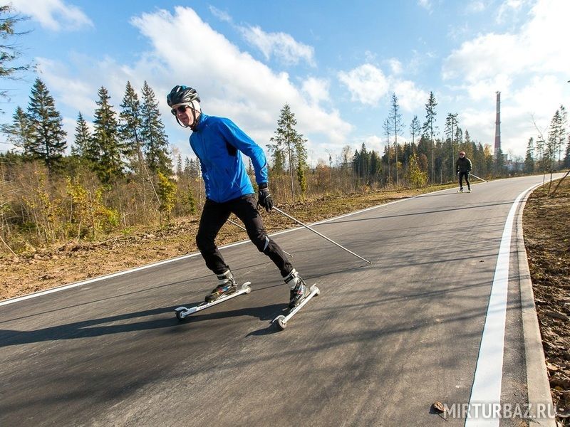 Все трассы проходят через сосновый лес, что создает особую атмосферу. Летом это роллерная трасса, зимой — лыжная. За счет асфальтового покрытия, зимой удается достичь идеально ровного снежного покрова.