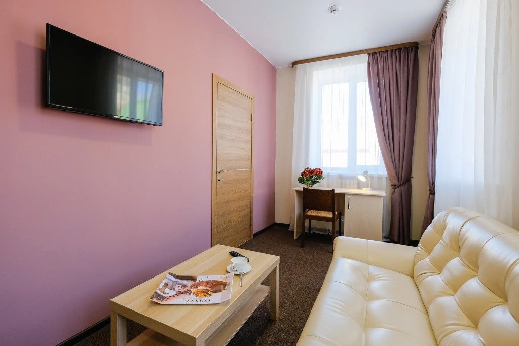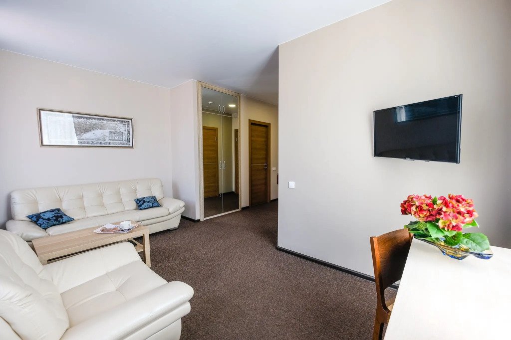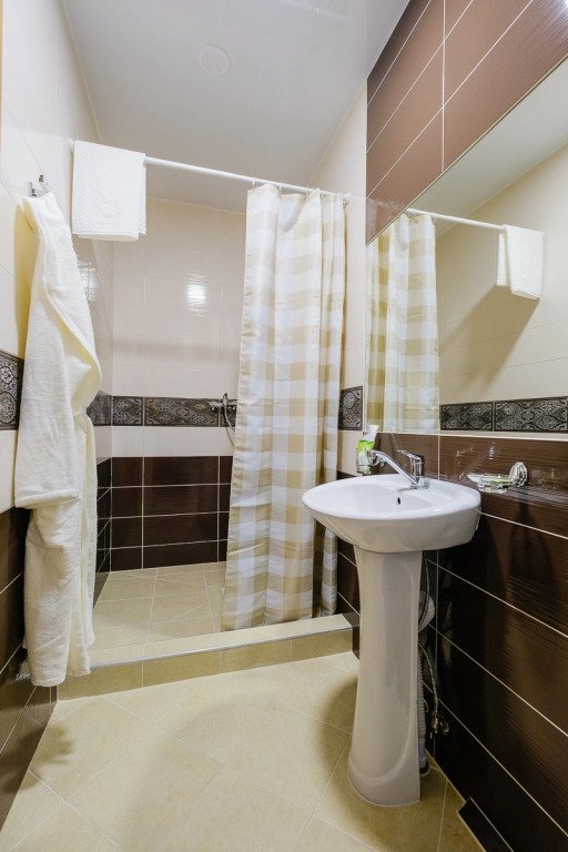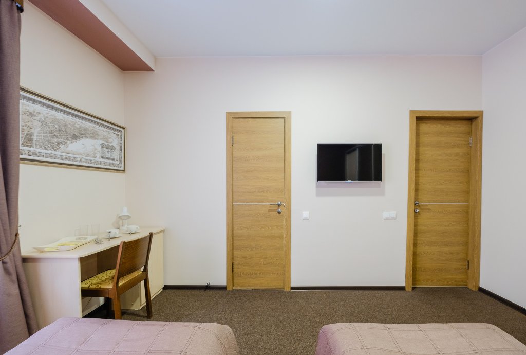 В номере вас будут ждать телевизор и халат. Оснащение зависит от выбранной категории номера.