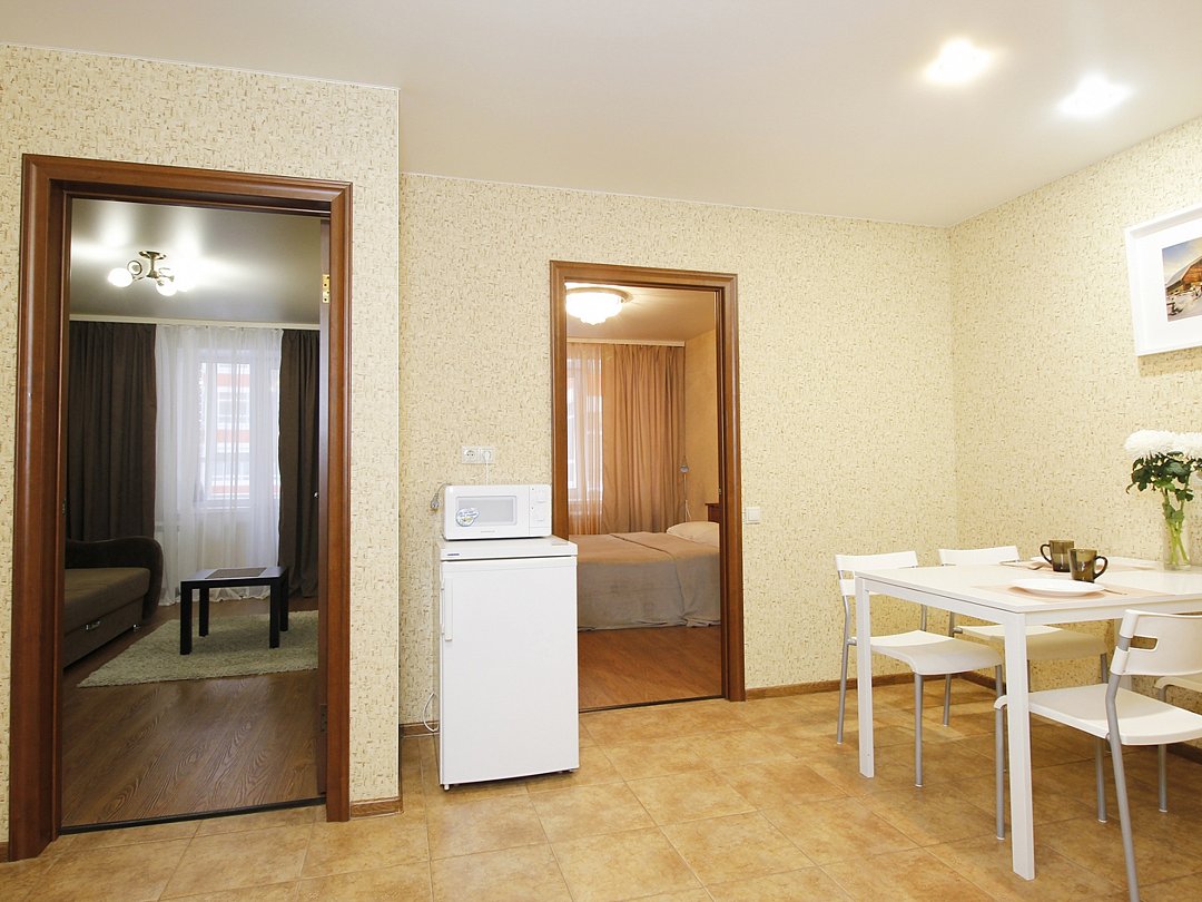 Здесь всё для вашего комфортного проживания, уютный дизайн. Апартаменты расположены в 10 этажной кирпичной новостройке в центре Томска. Рядом с домом находится Стадион Труд, Городской Сад, пл. Новособорная, «Газпром трансгаз Томск», мэрия г. Томска, пр. Ленина и пр. Фрунзе.В гостиничном номере