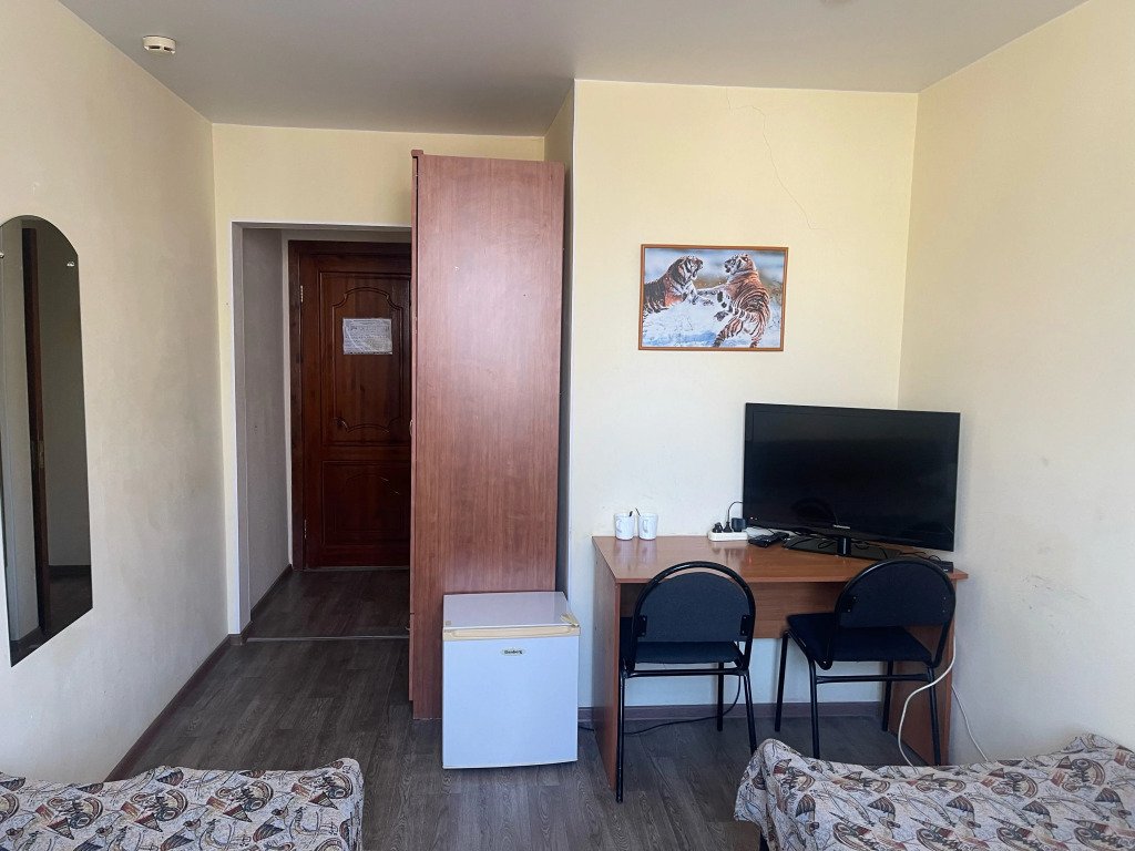 В номере вы найдёте телевизор. Оснащение зависит от выбранной категории номера.