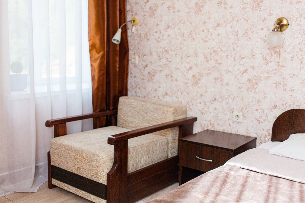 Номер уютно обставлен и оснащён необходимым, чтобы отдохнуть после долгого и насыщенного дня. Имеются телевизор. Оснащение зависит от выбранной категории номера.